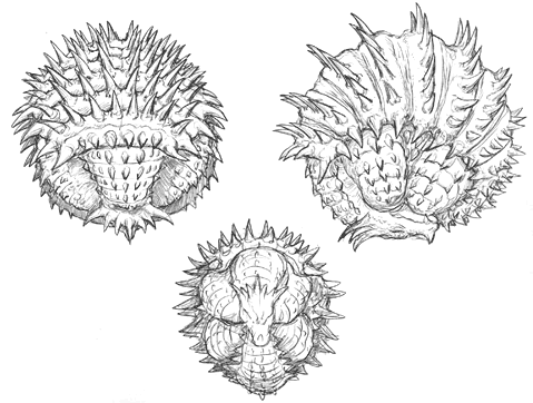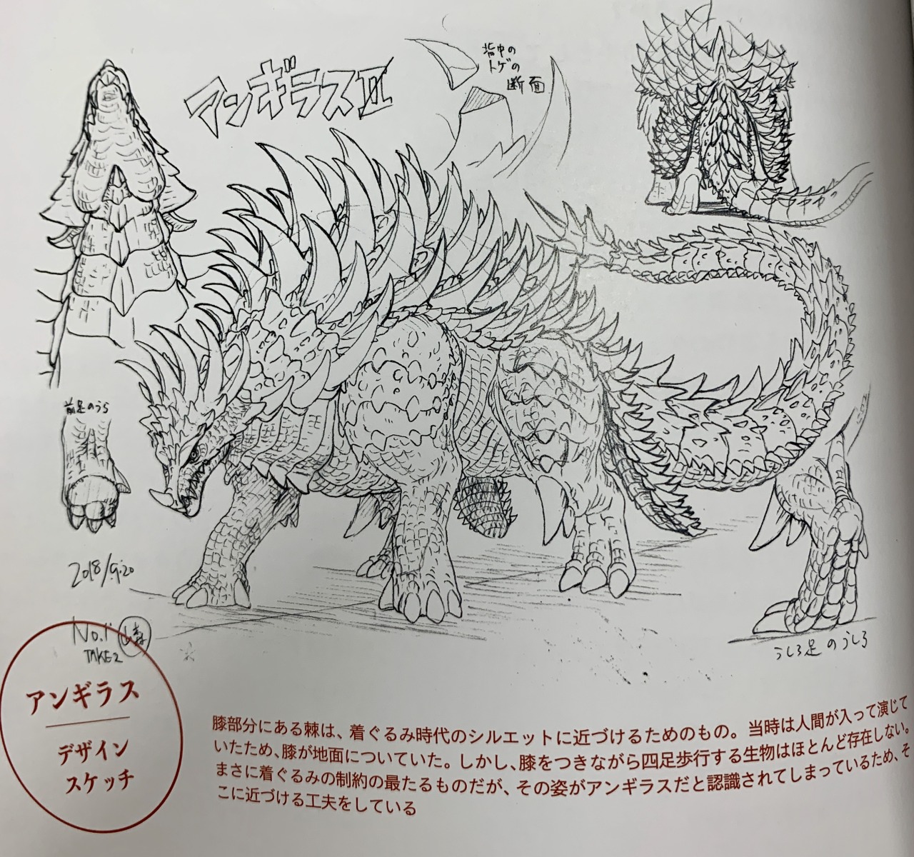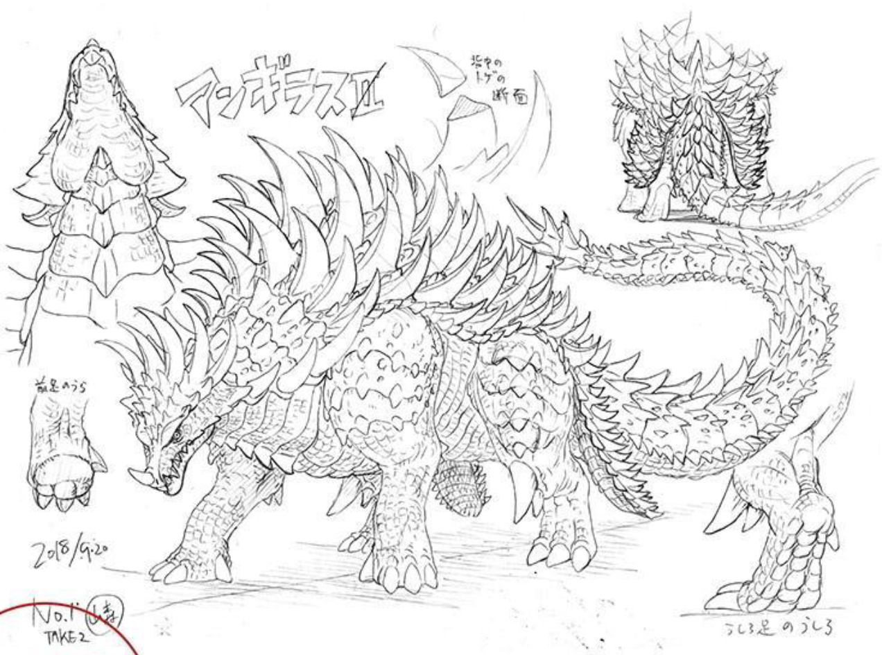 Anguirus concept art, along with concept art for the Anguirus Hound and Barubaroi