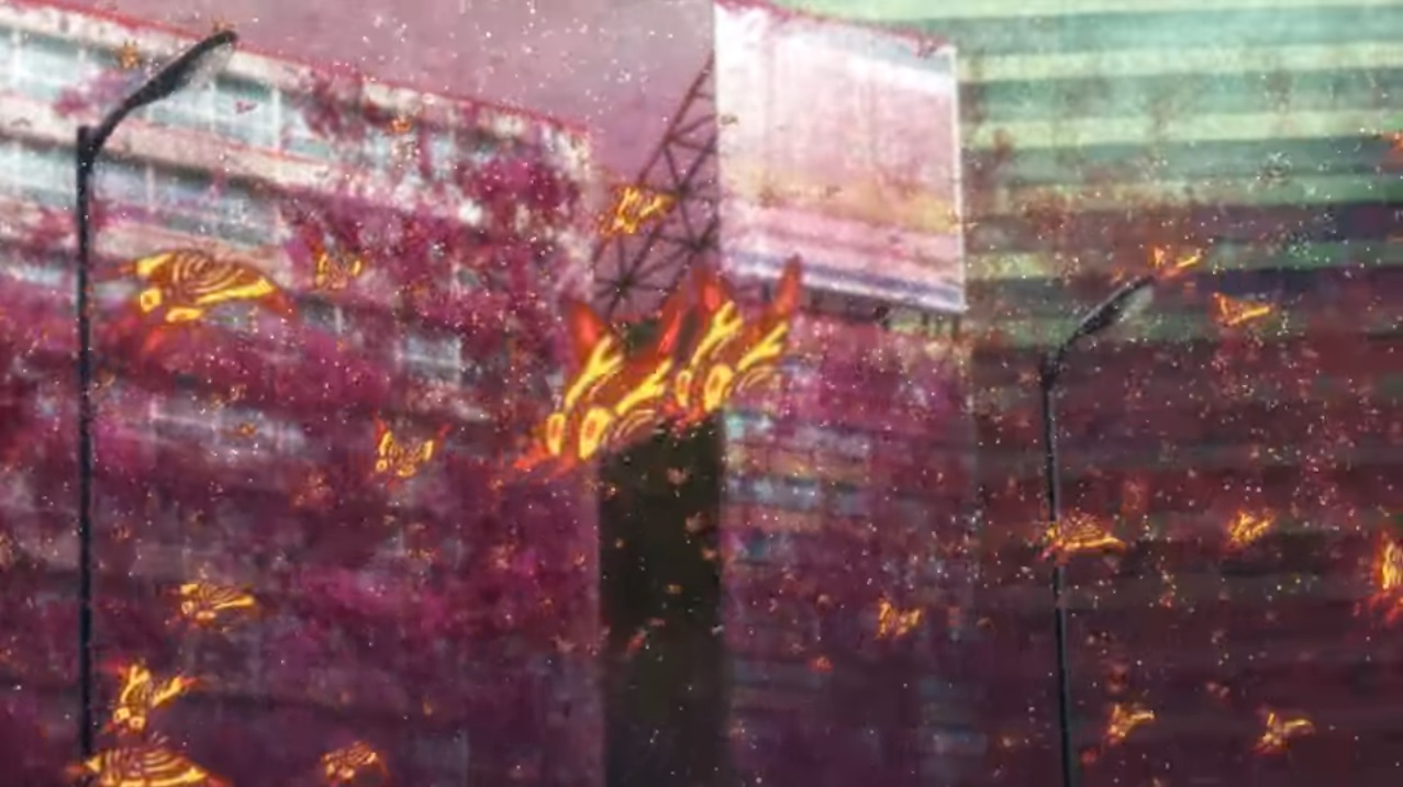 As Yun Arikawa, Goro Otaki, Haberu Kato, Shunya Sato and Jet Jaguar PP unload their truck, a strange moth lands on Jet Jaguar's finger. Jet Jaguar asks Yun if it will bite, but Yun reassures it the moth just wants to play. It soon flies away, leaving golden dust in its wake and saddening Jet Jaguar with its departure. As the kaiju and Red Dust cover increasingly large portions of the Earth, Colonel Yoshiyasu Matsubara and his troops observe a red plant mass which shares properties with the Red Dust, grows by absorbing it, causes buildings to collapse, and even appears to be distorting reality itself. During this discussion, Yukie and Makita arrive to deliver an Orthogonal Diagnolizer which can semi-permanently neutralize the Red Dust with a code that Mei is attempting to find. Makita relays Mei's suggestion to seek out Yun for help.