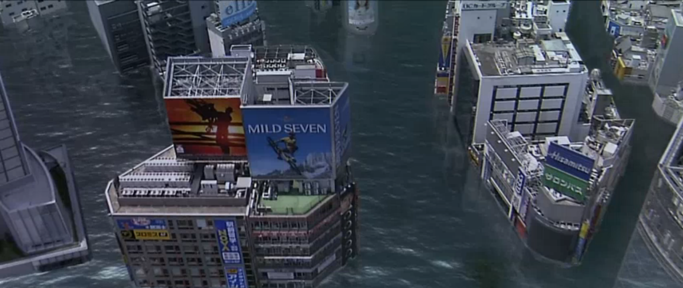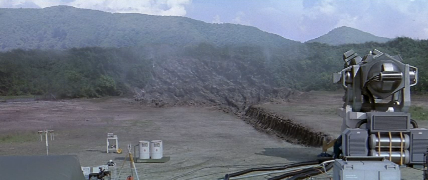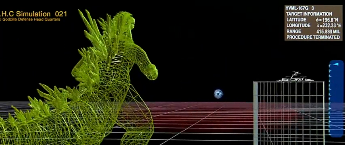 A simulation demonstrating the use of the Dimension Tide against Godzilla