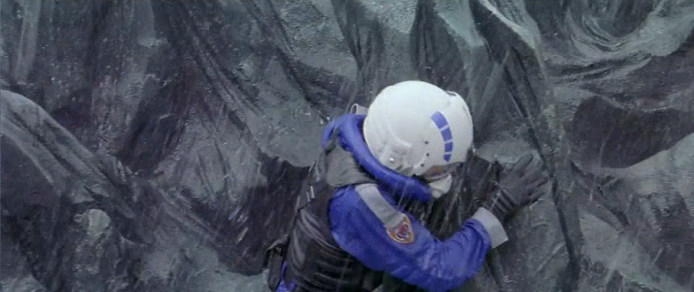 Kiriko Tsujimori grabs onto Godzilla's back