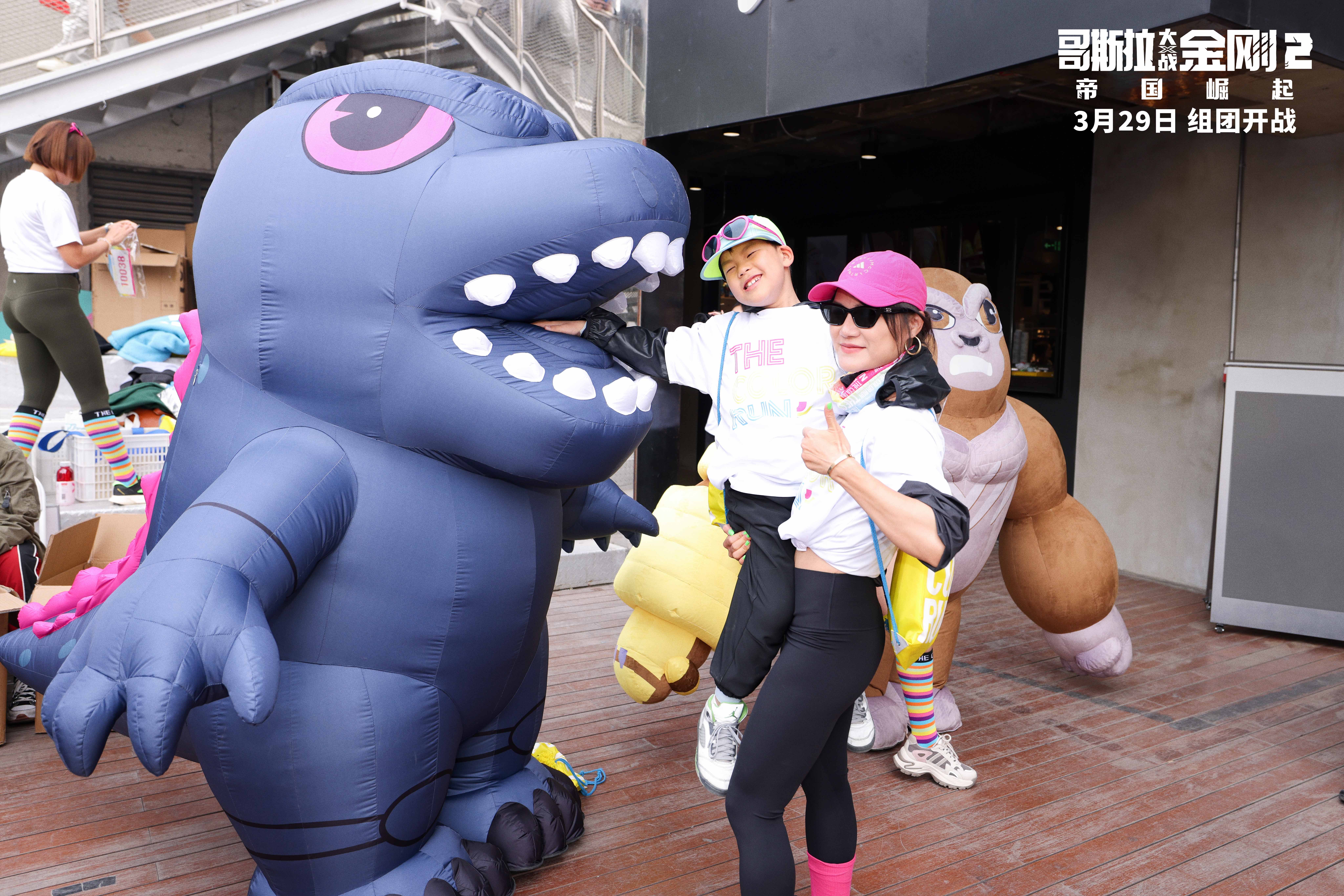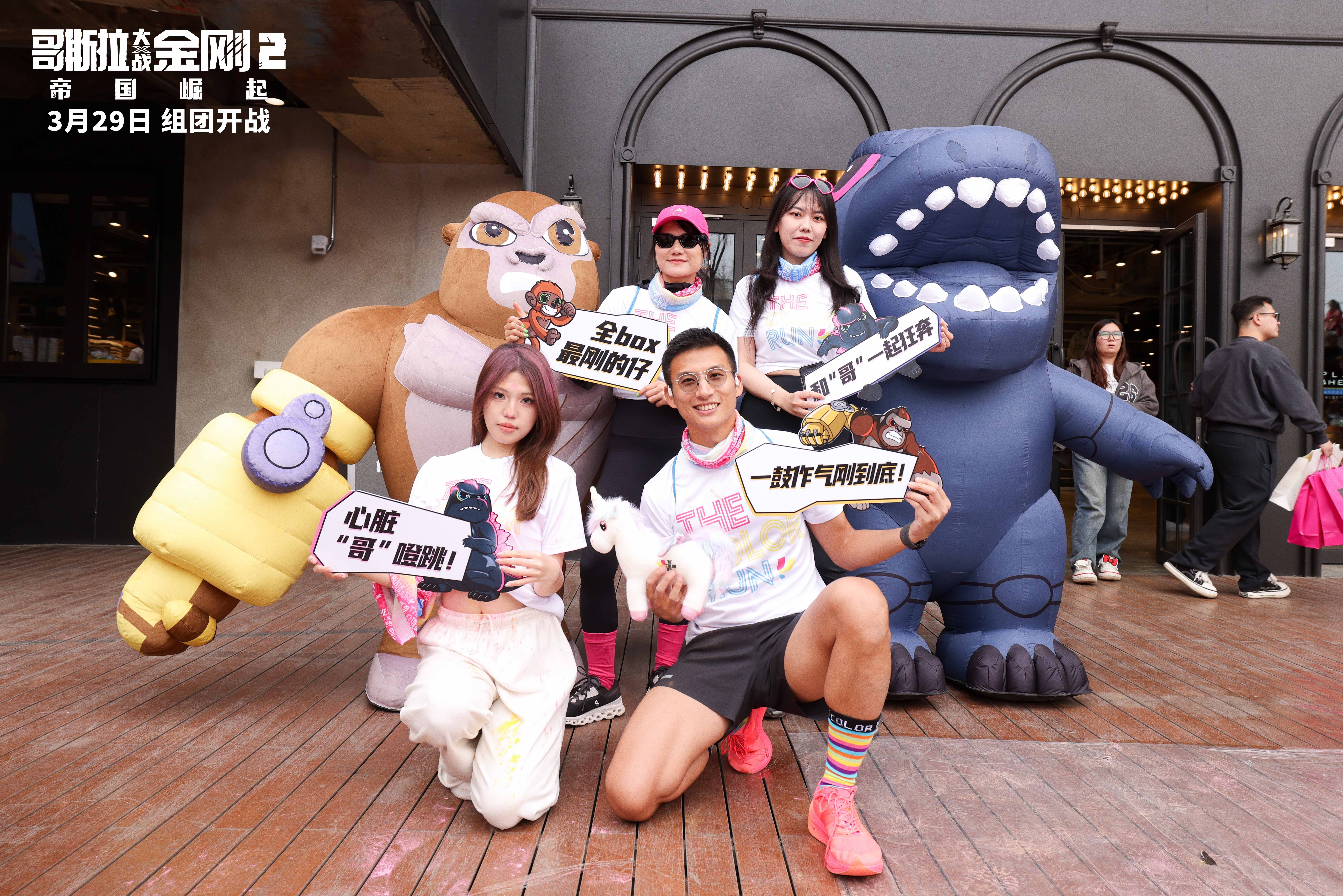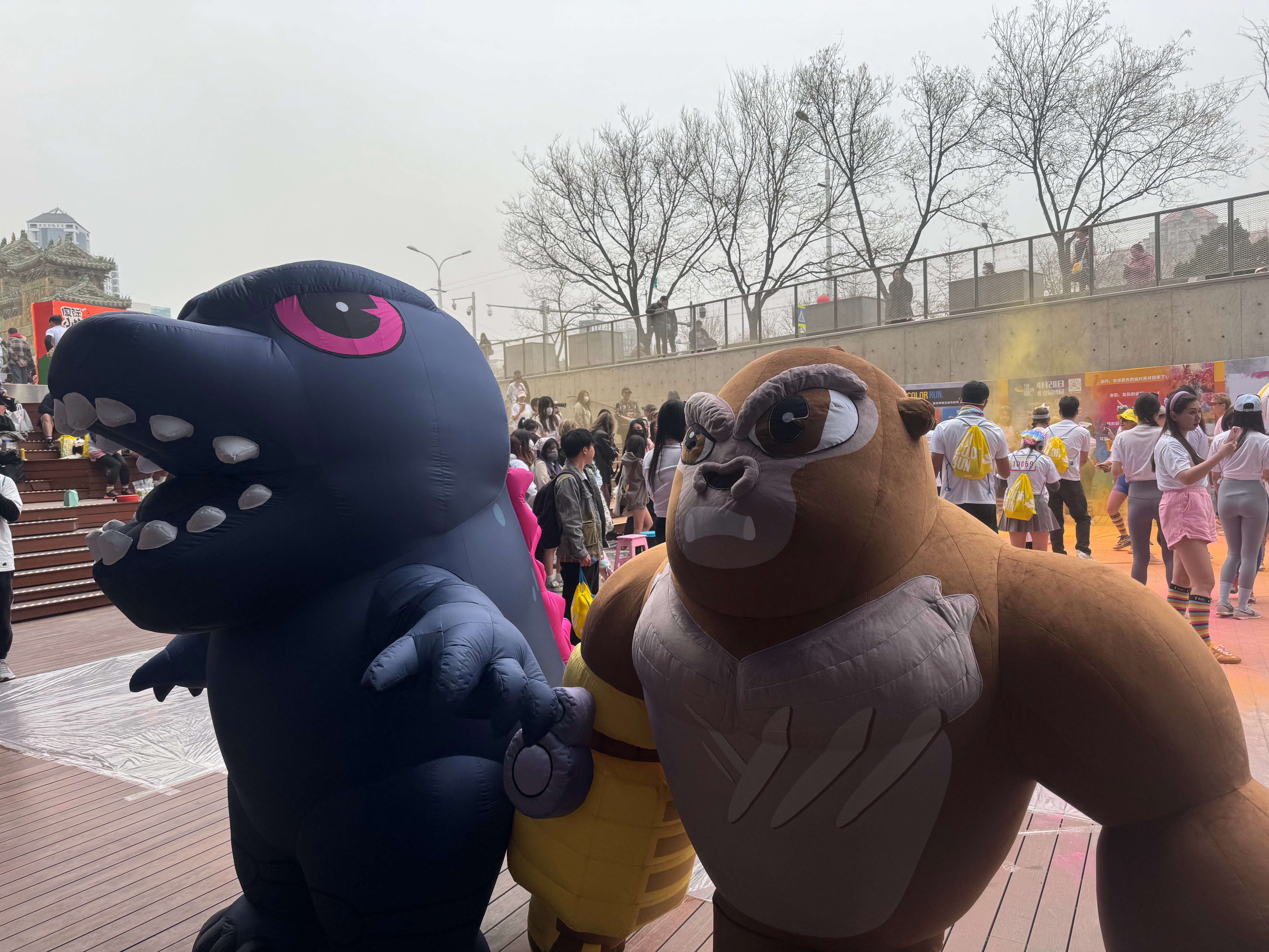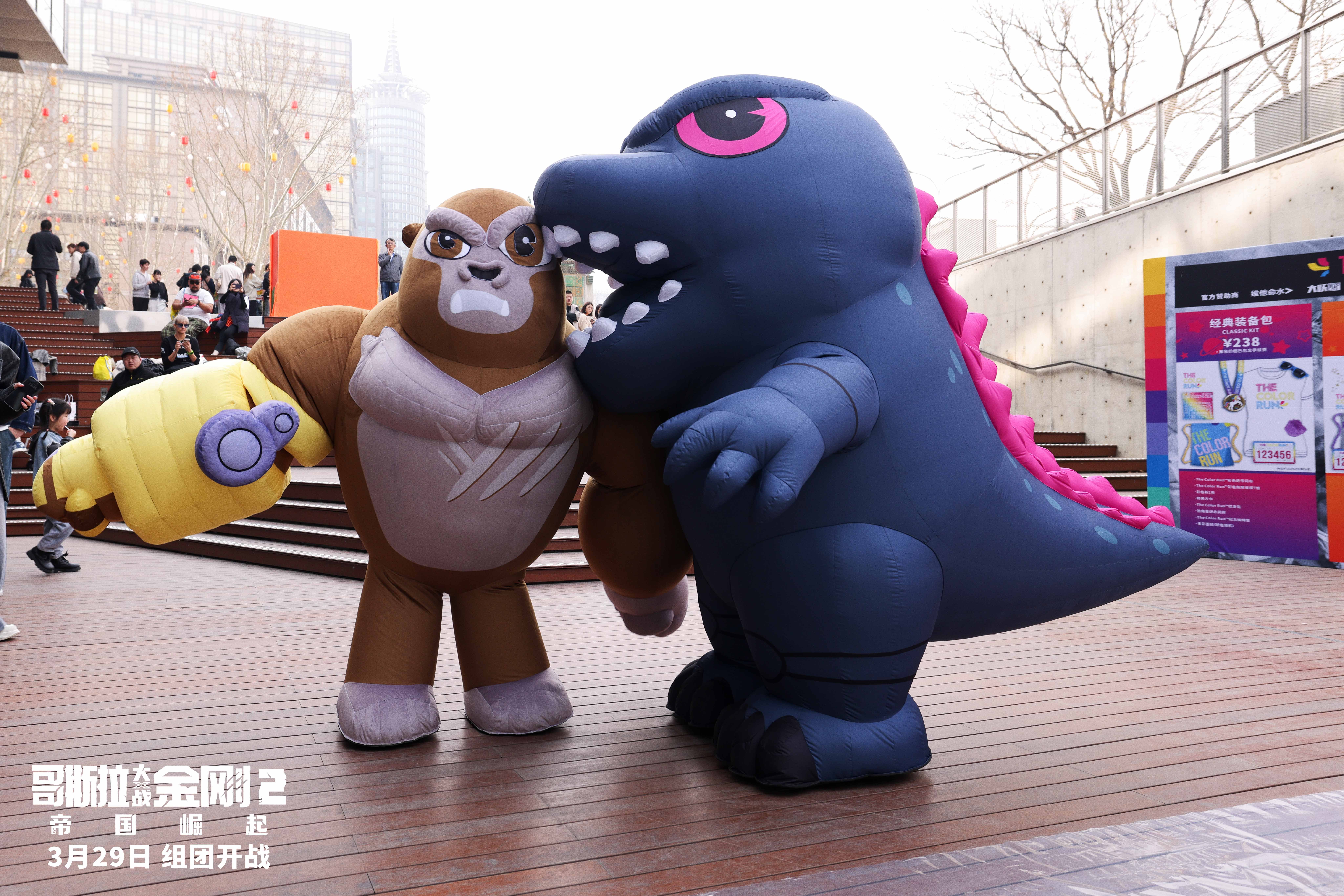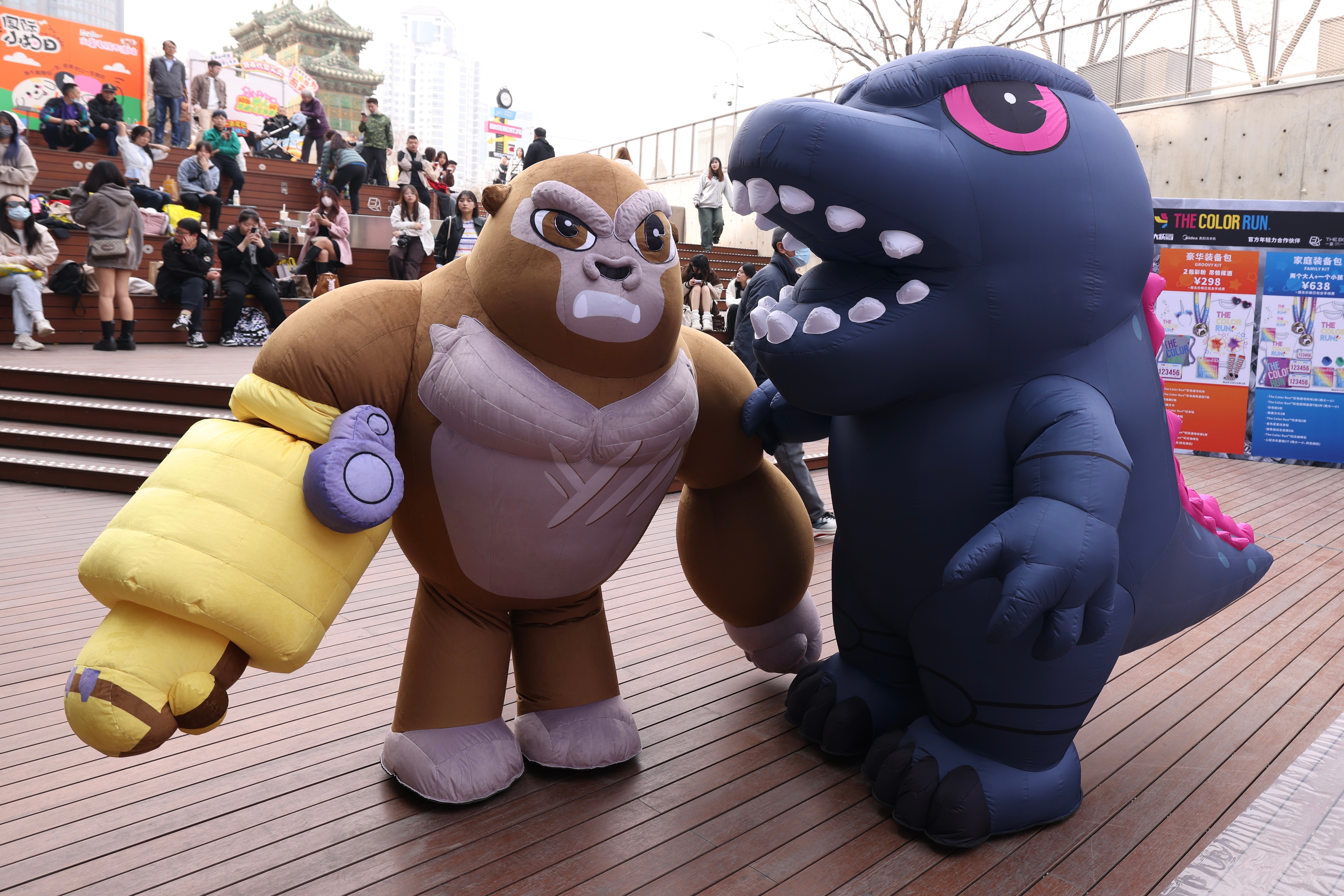 Godzilla and Kong at a Chinese Color Run