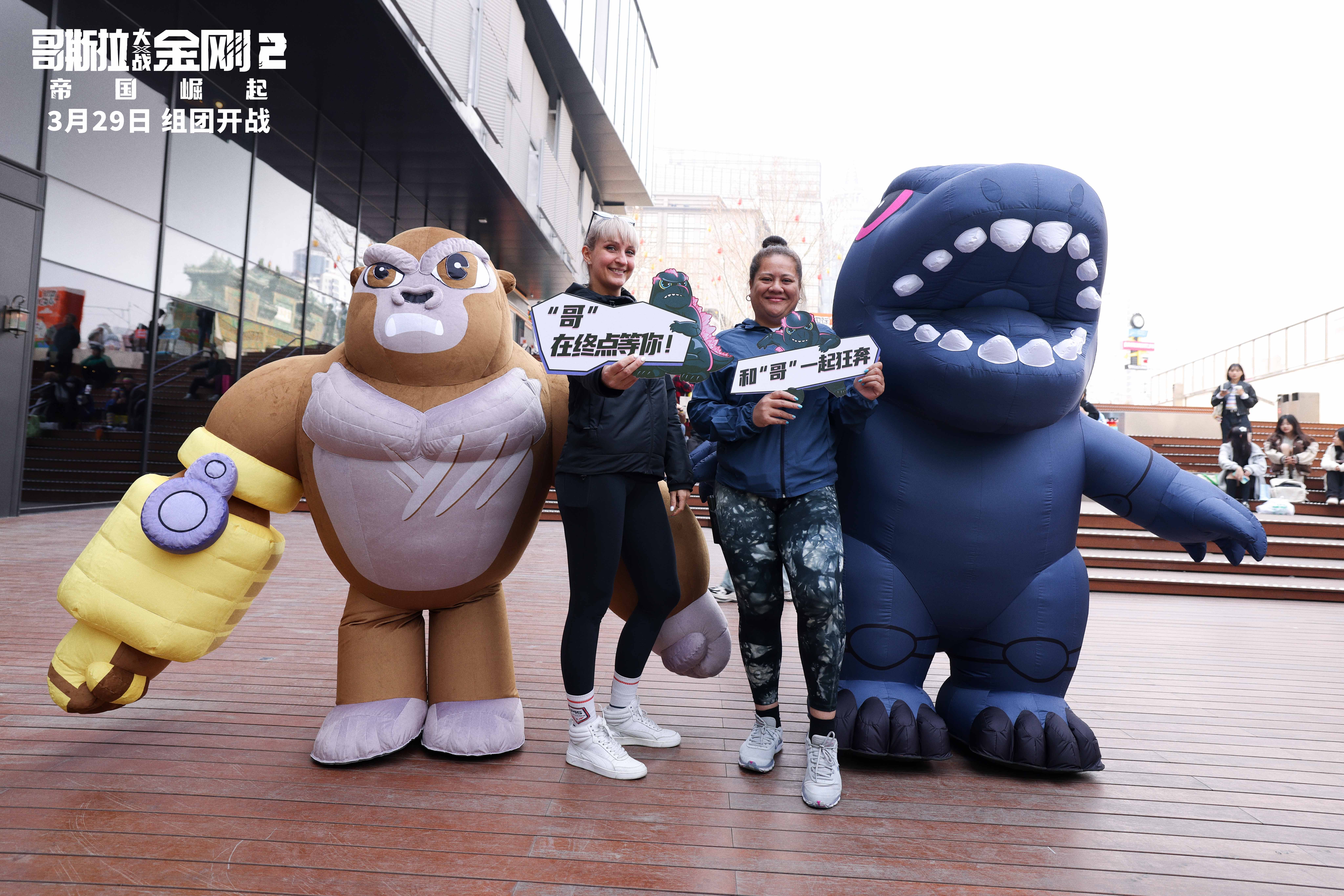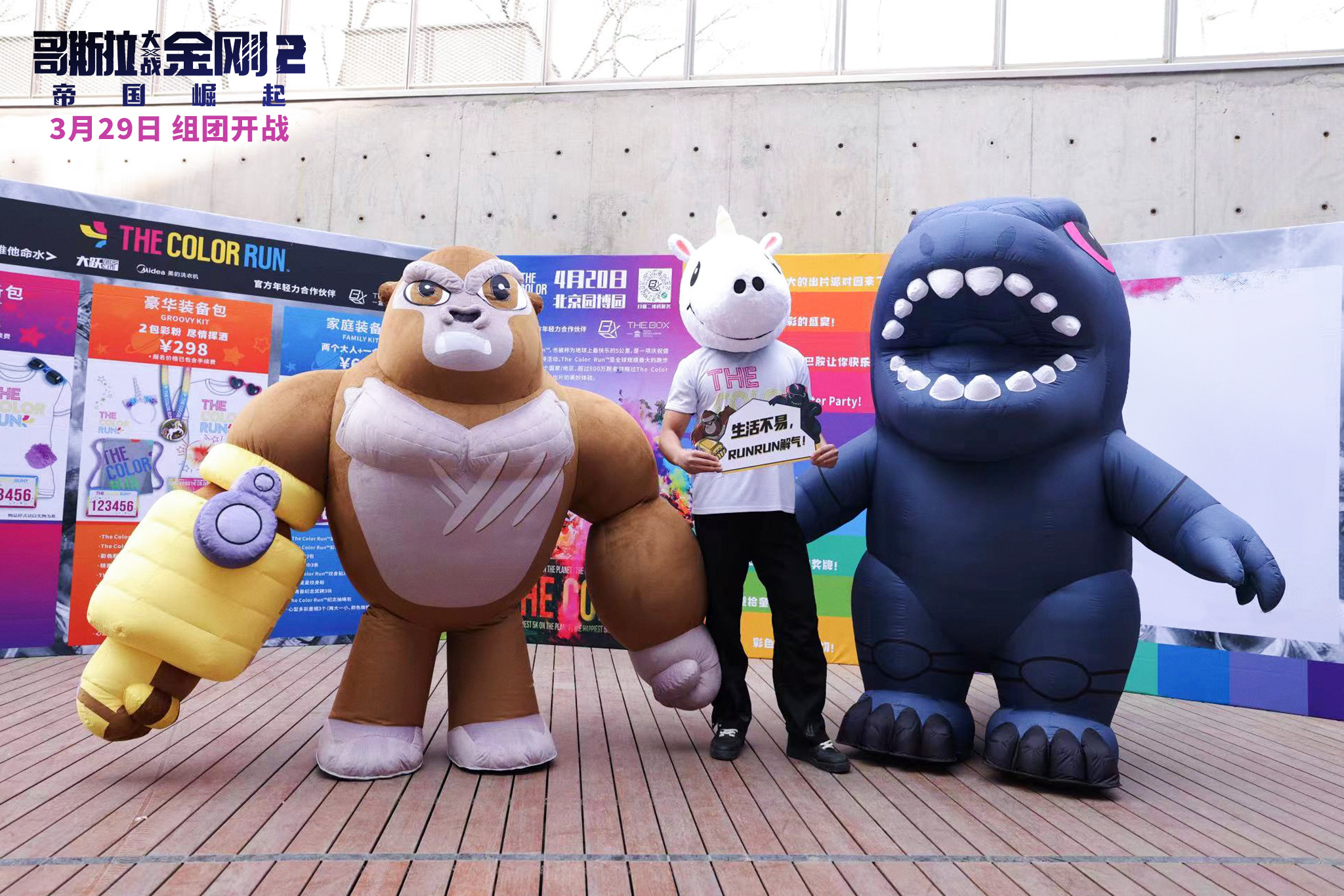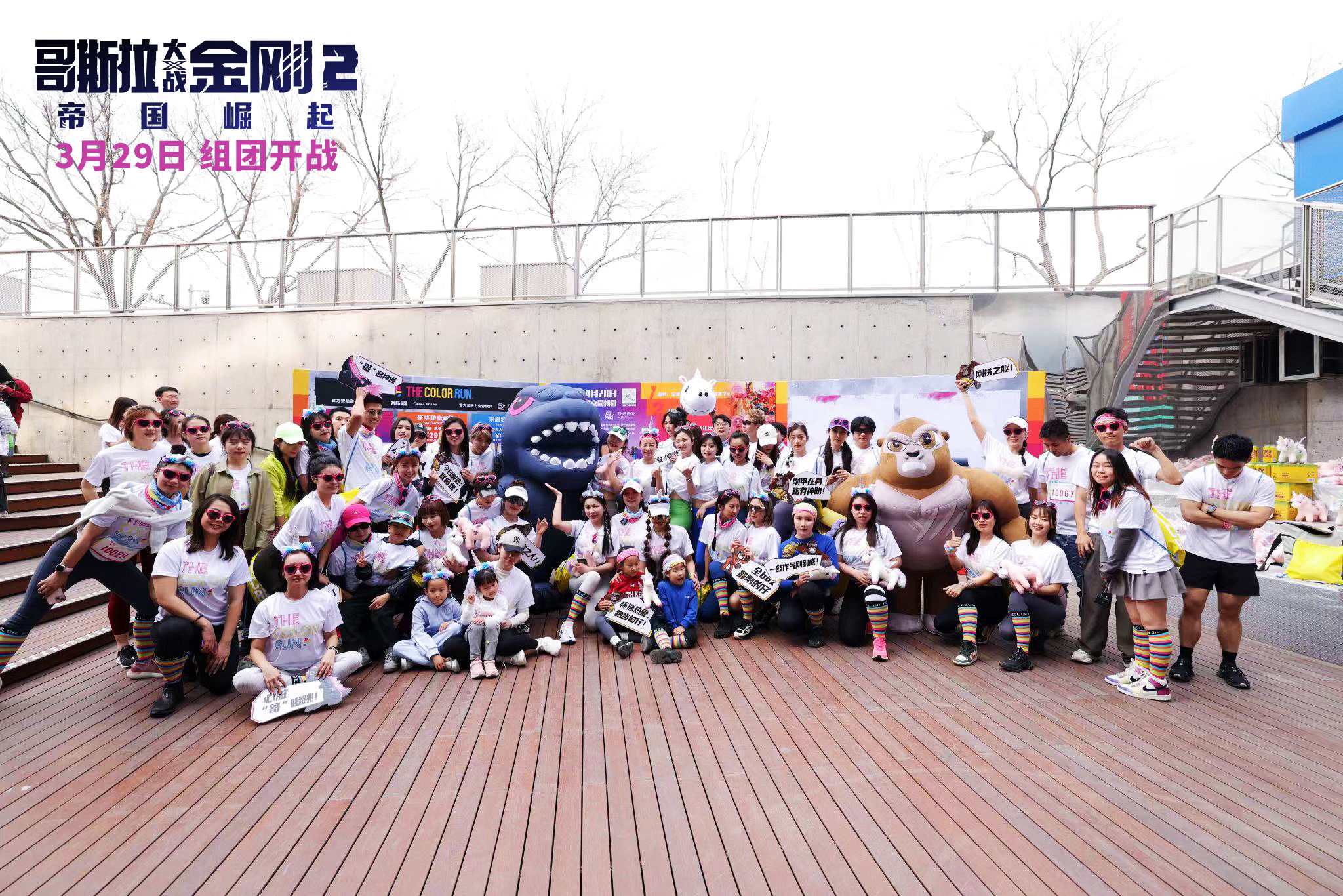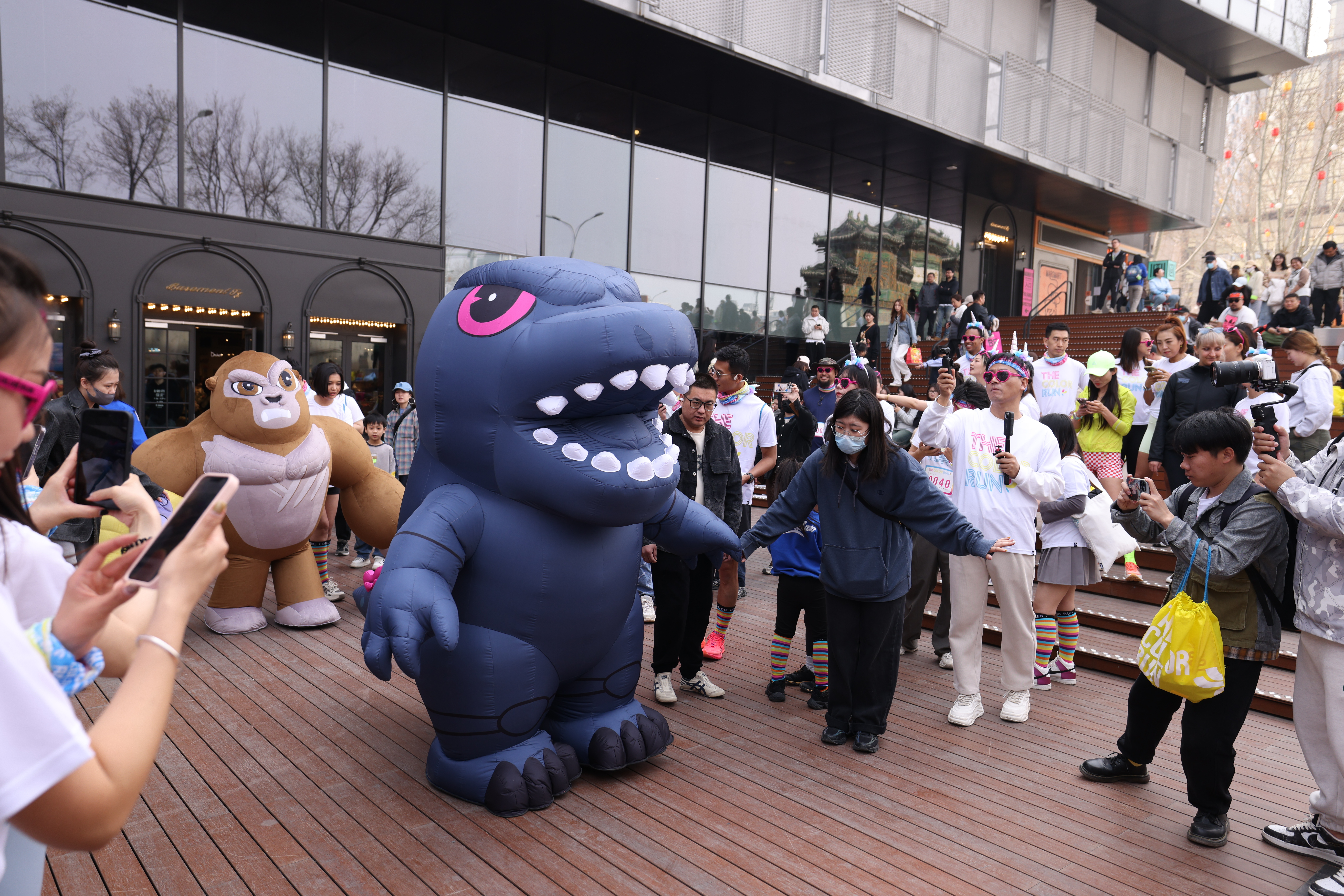 Godzilla and Kong at a Chinese Color Run