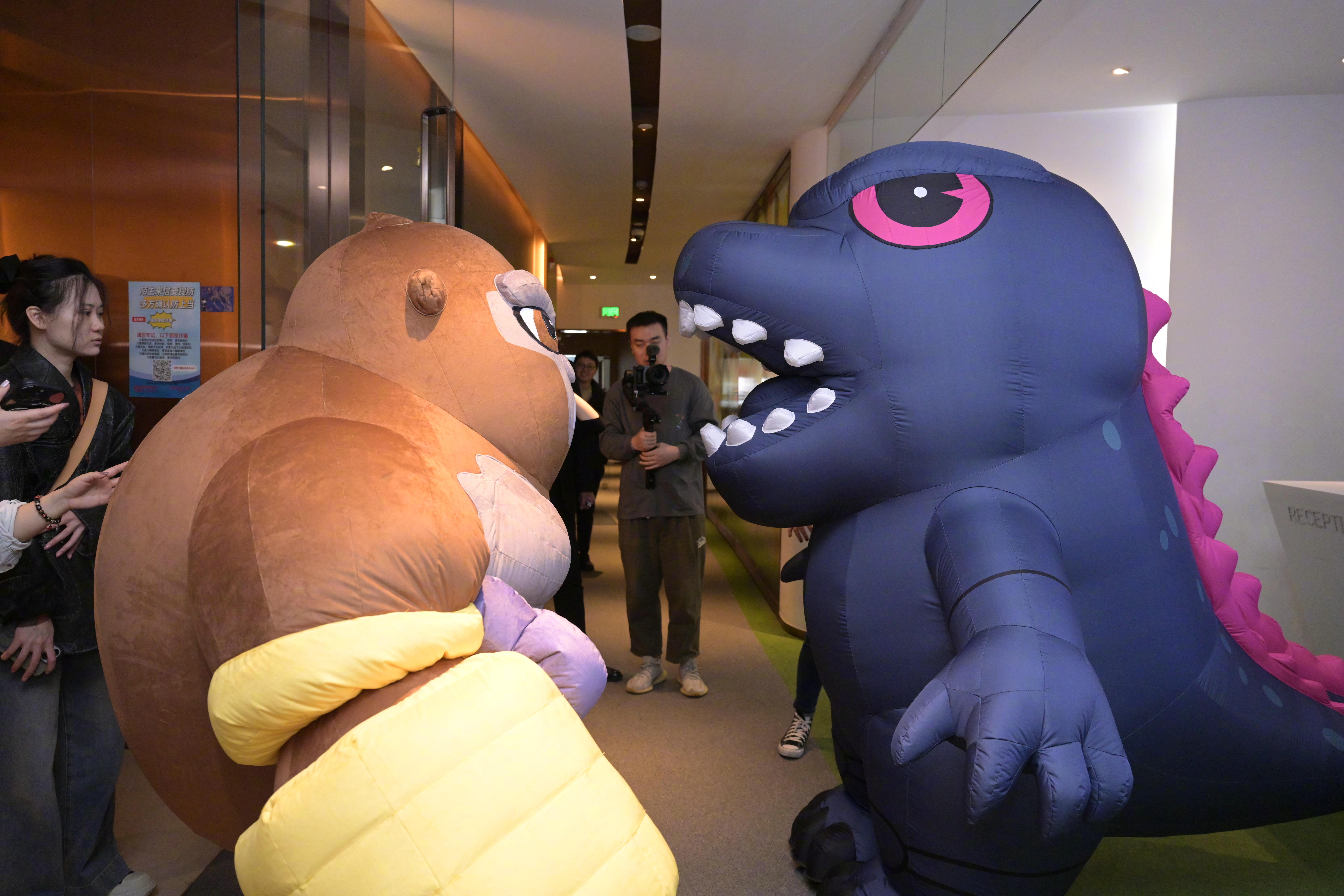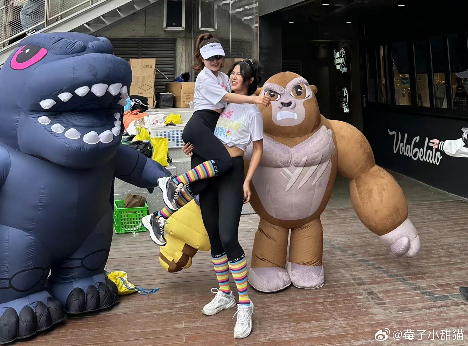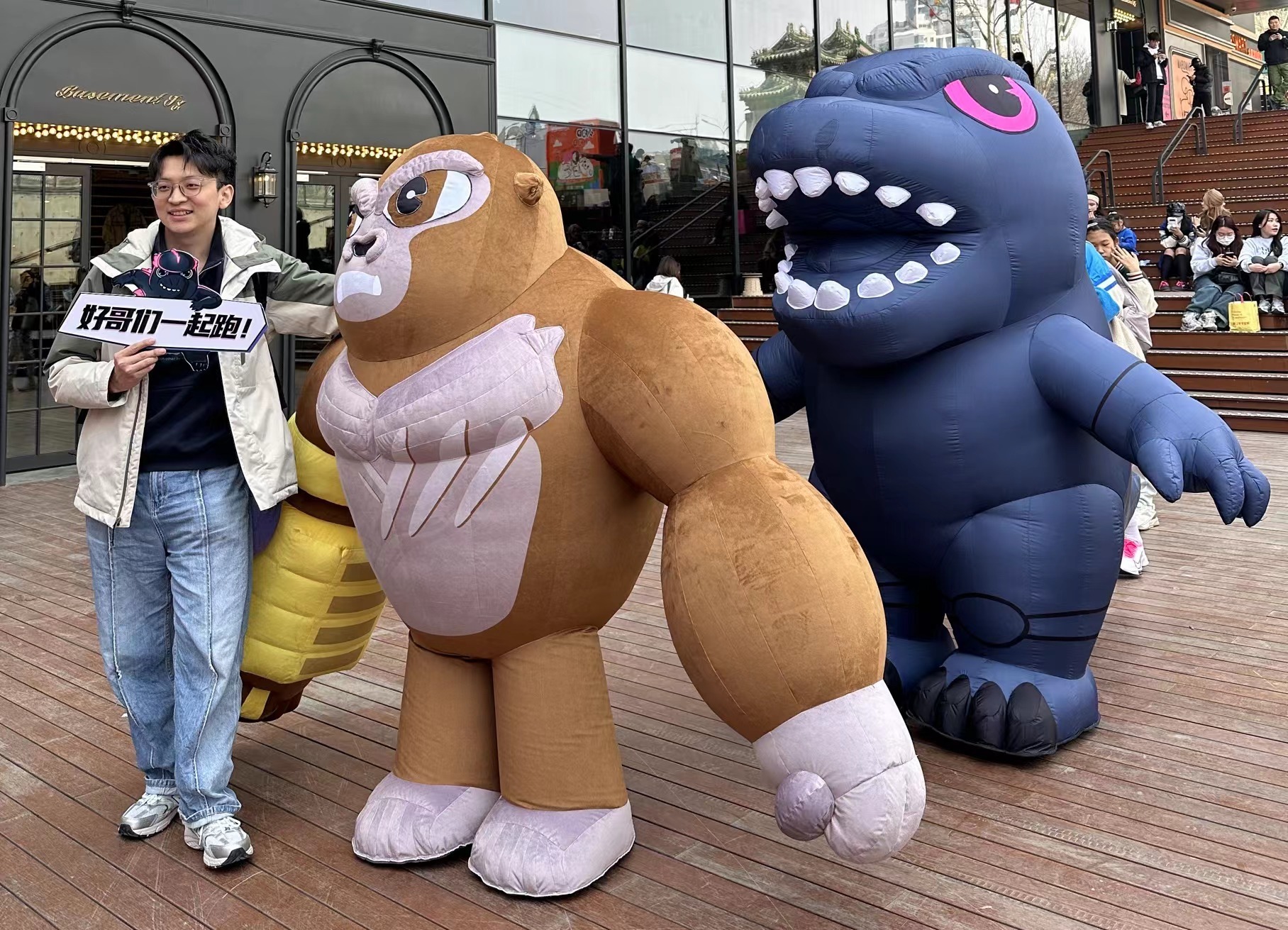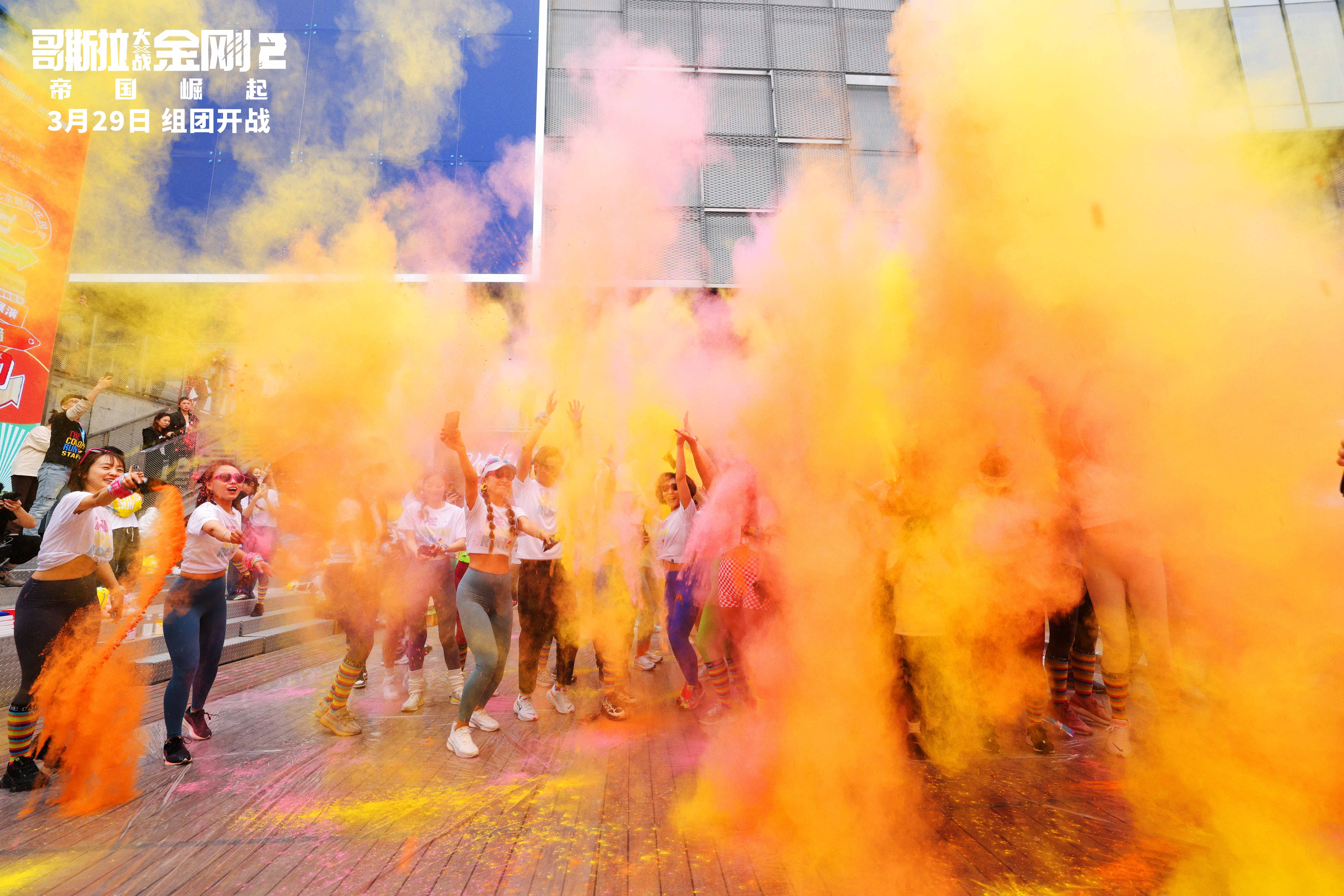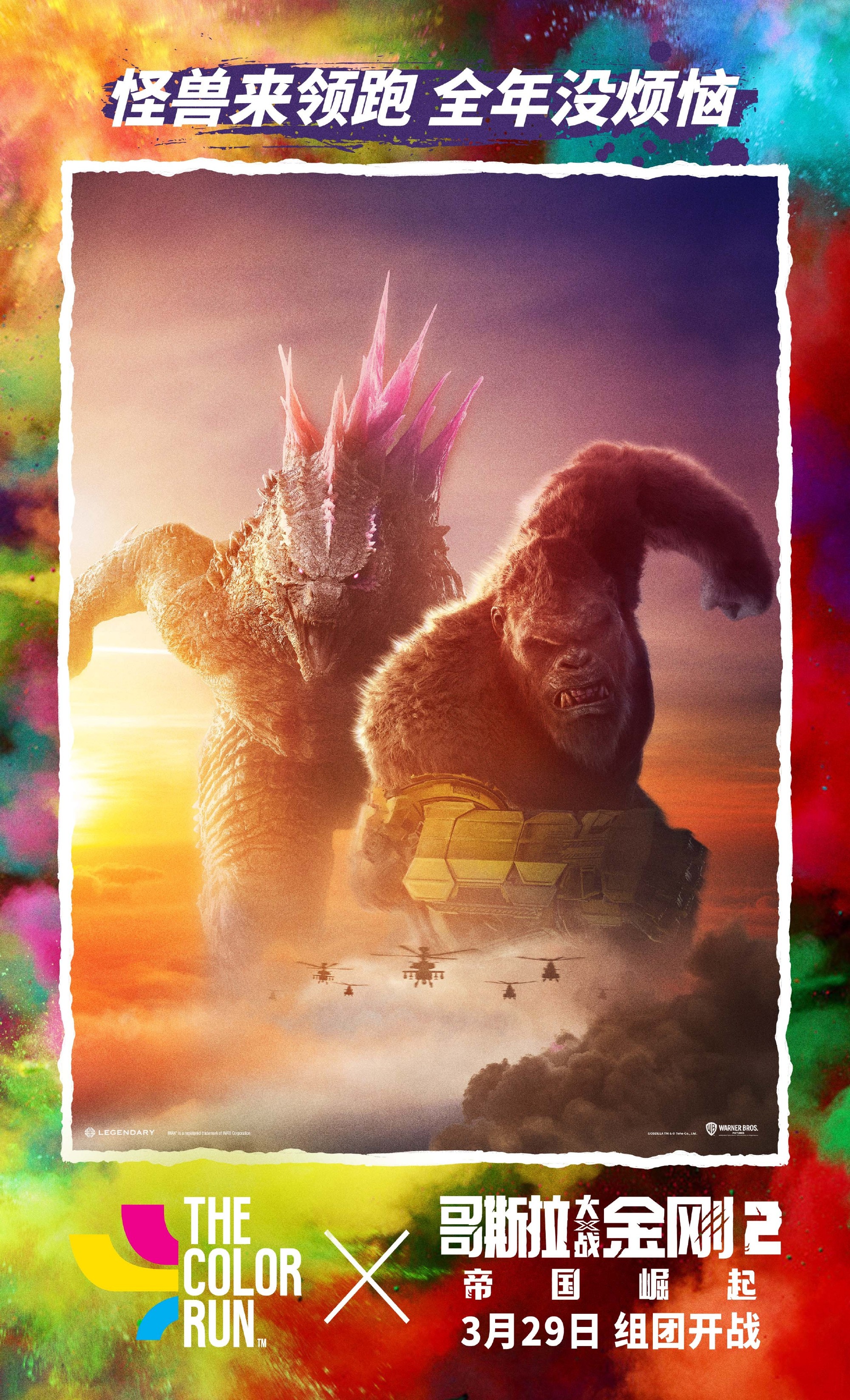 Godzilla and Kong at a Chinese Color Run