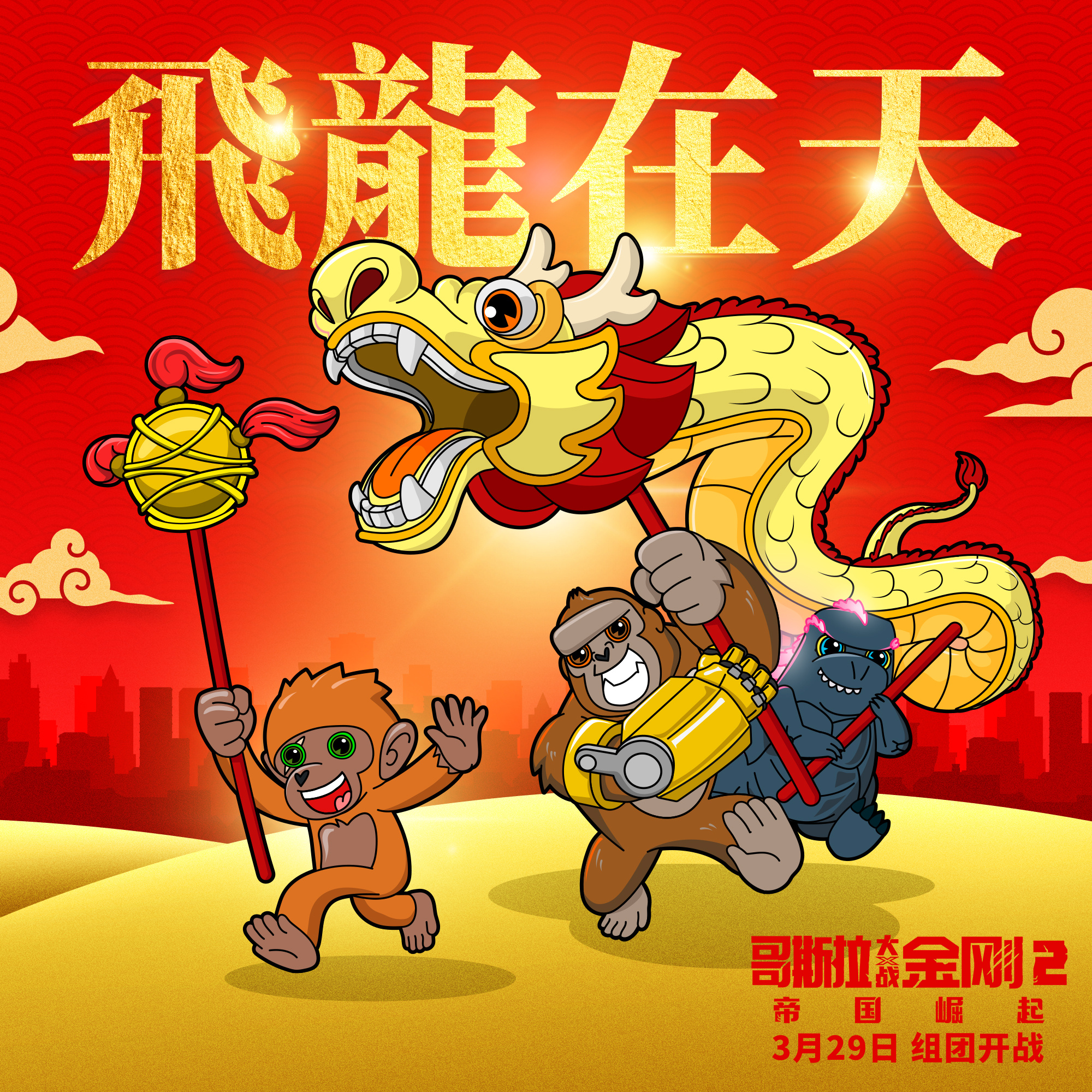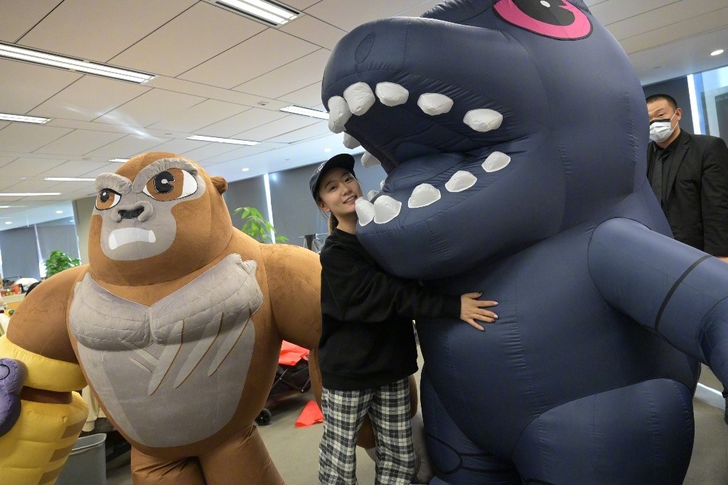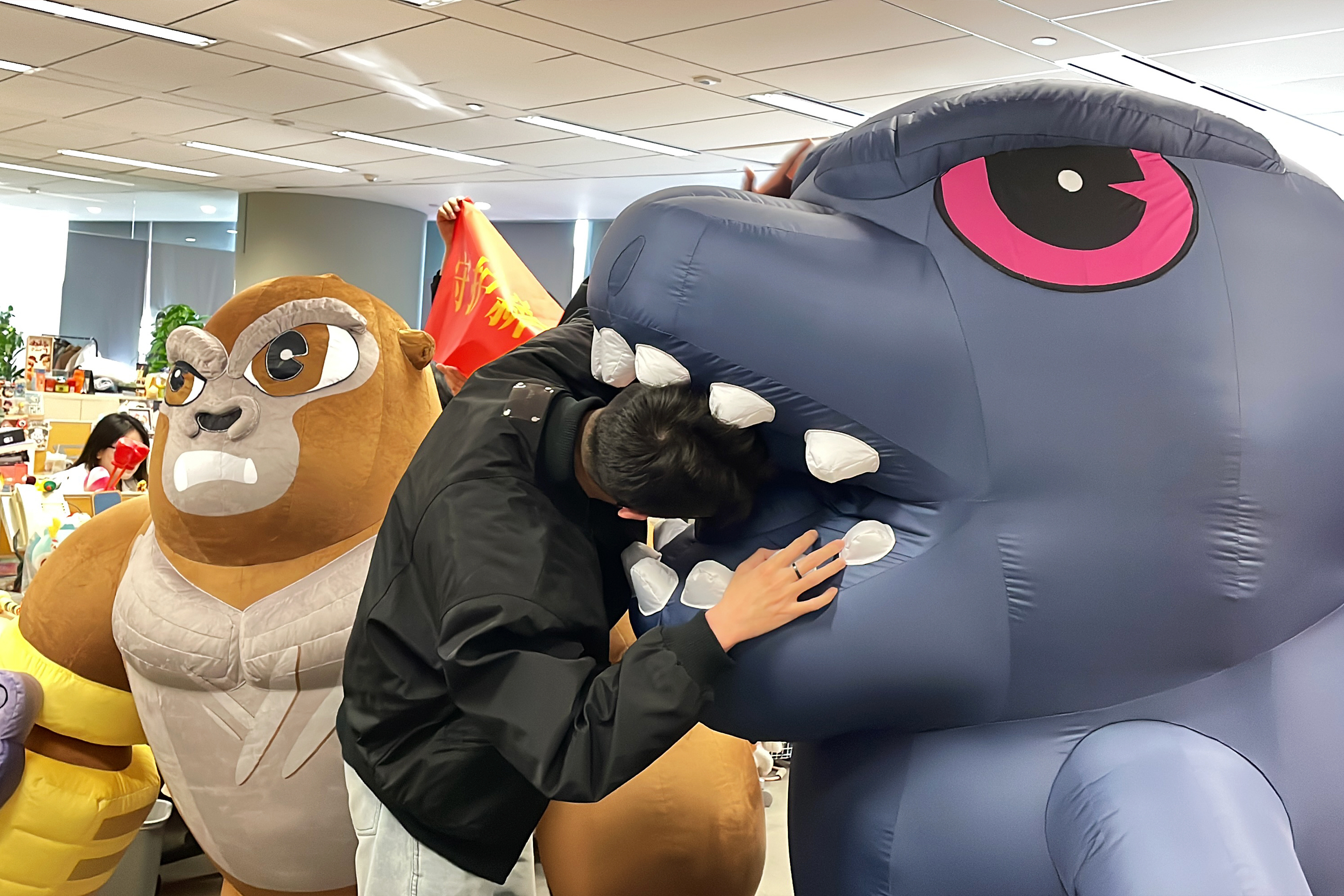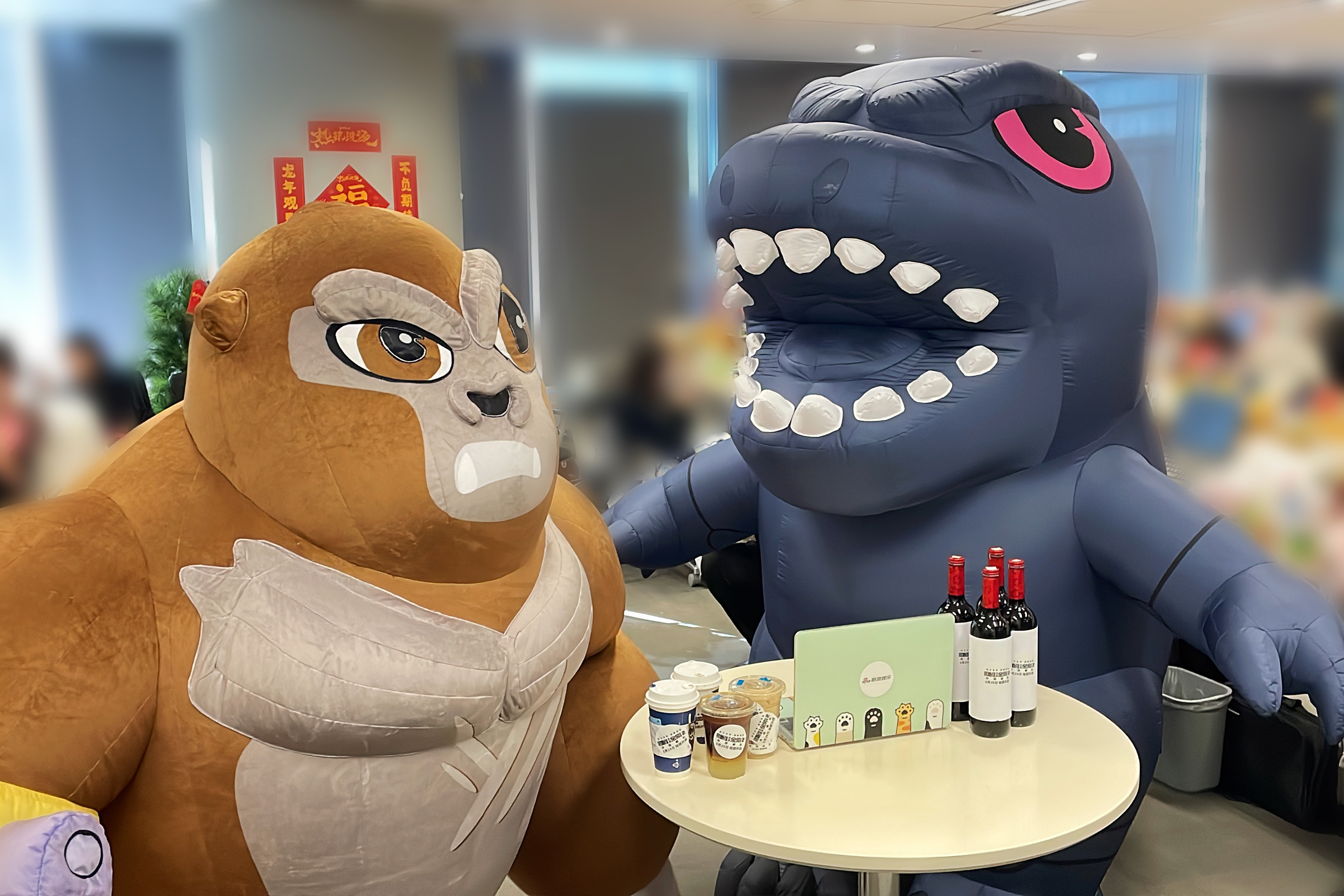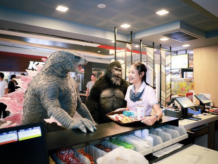 Godzilla and Kong at a Chinese Color Run