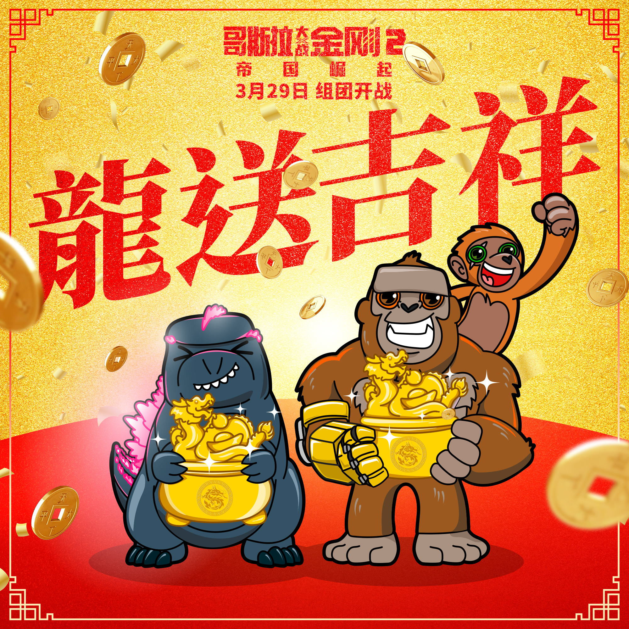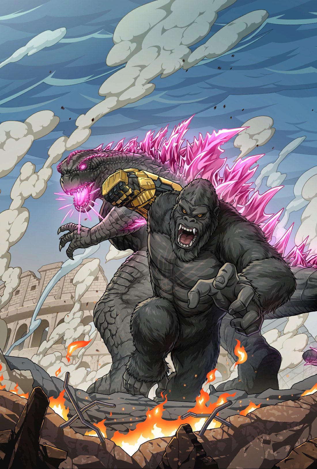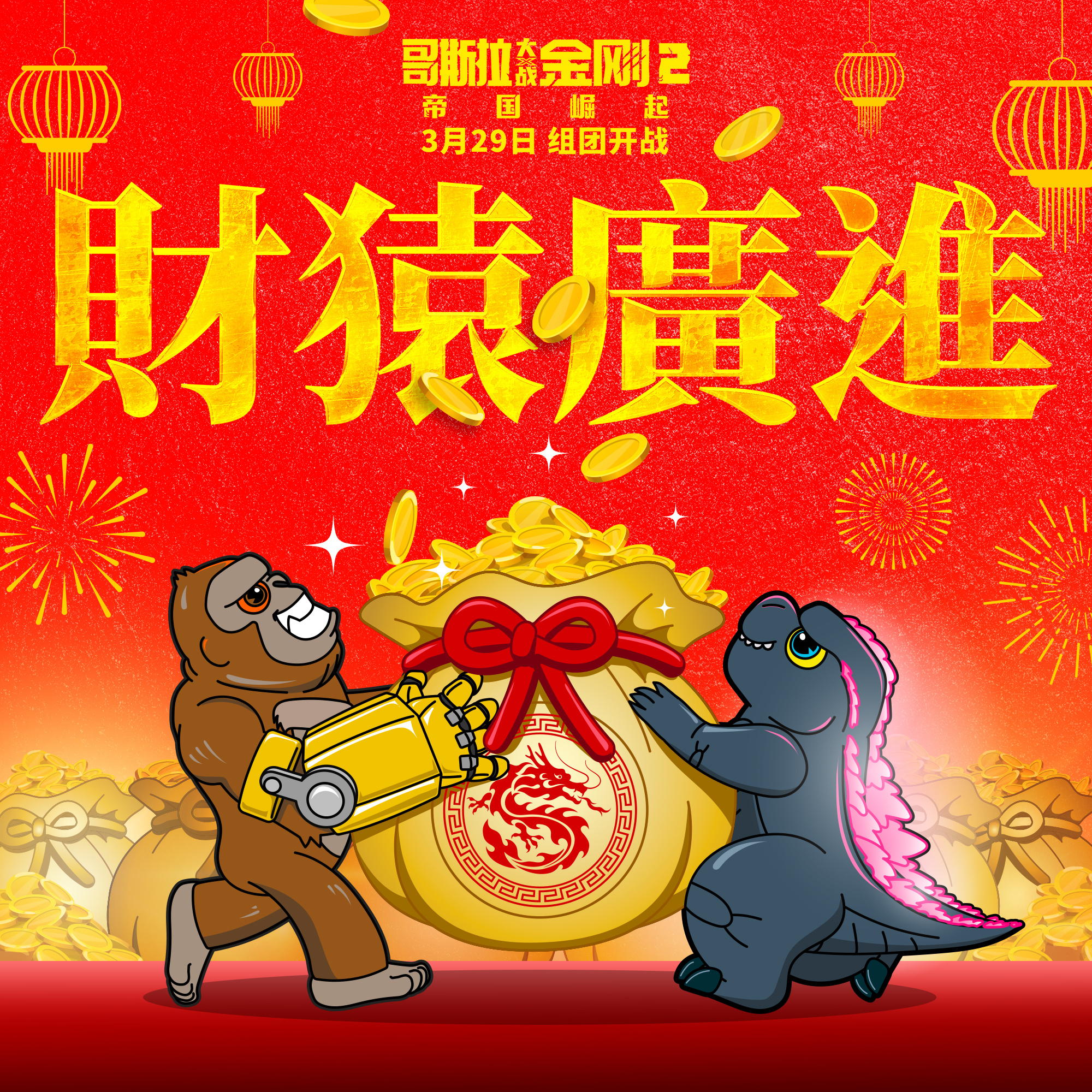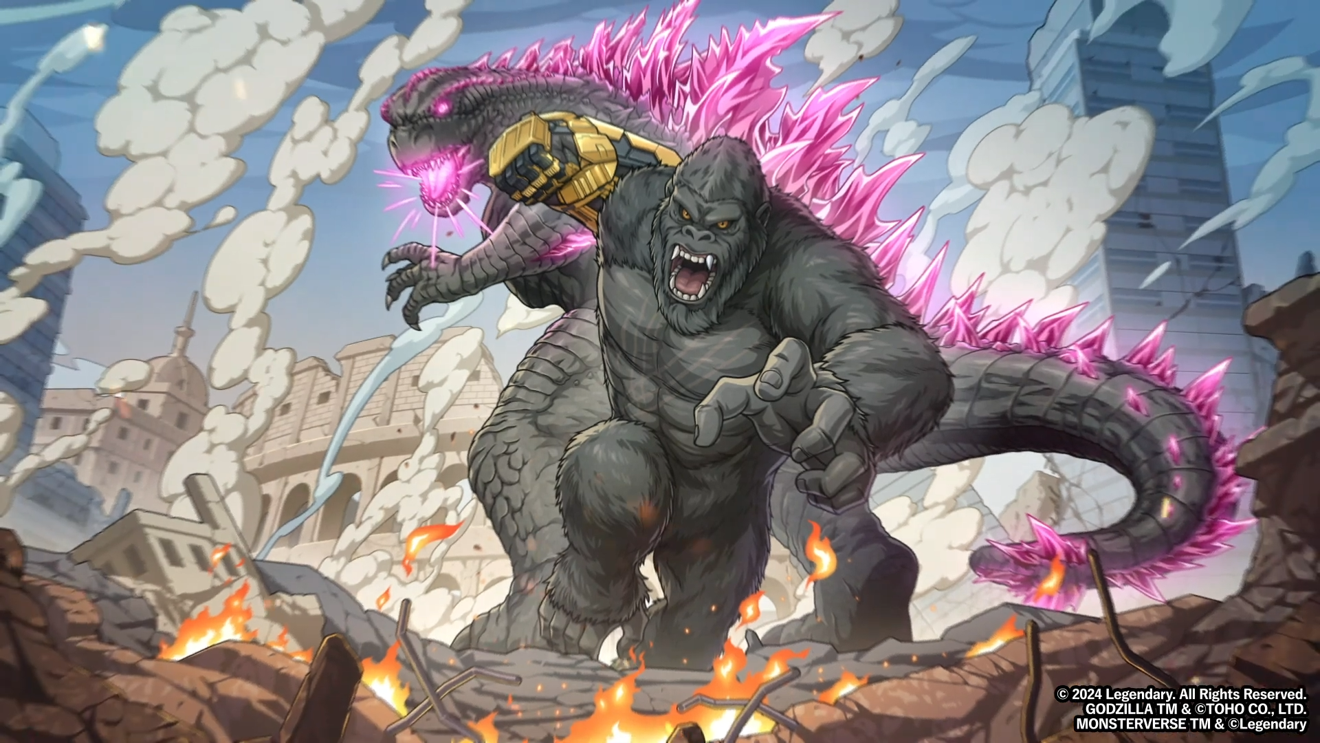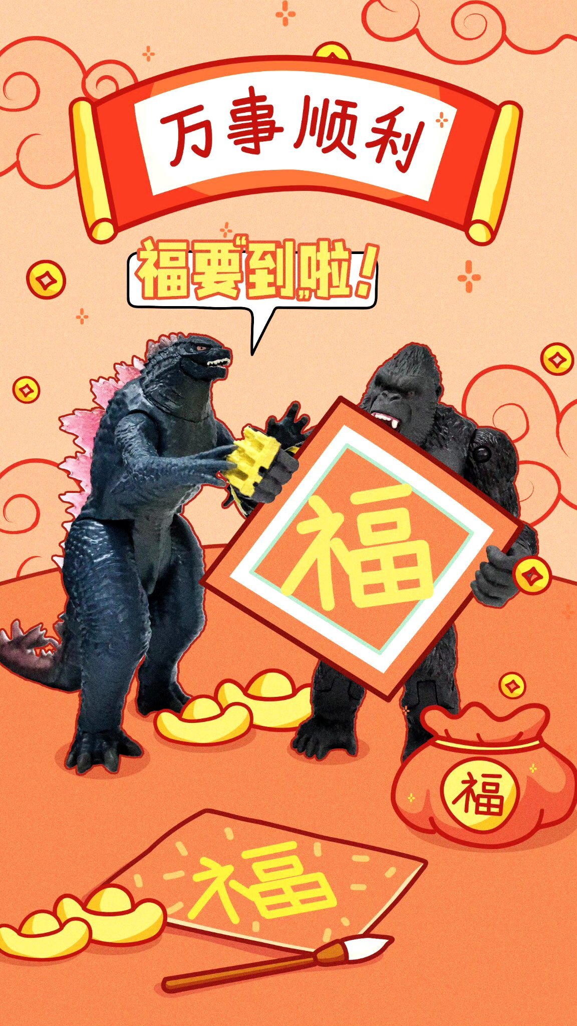 Godzilla and Kong at a Chinese Color Run
