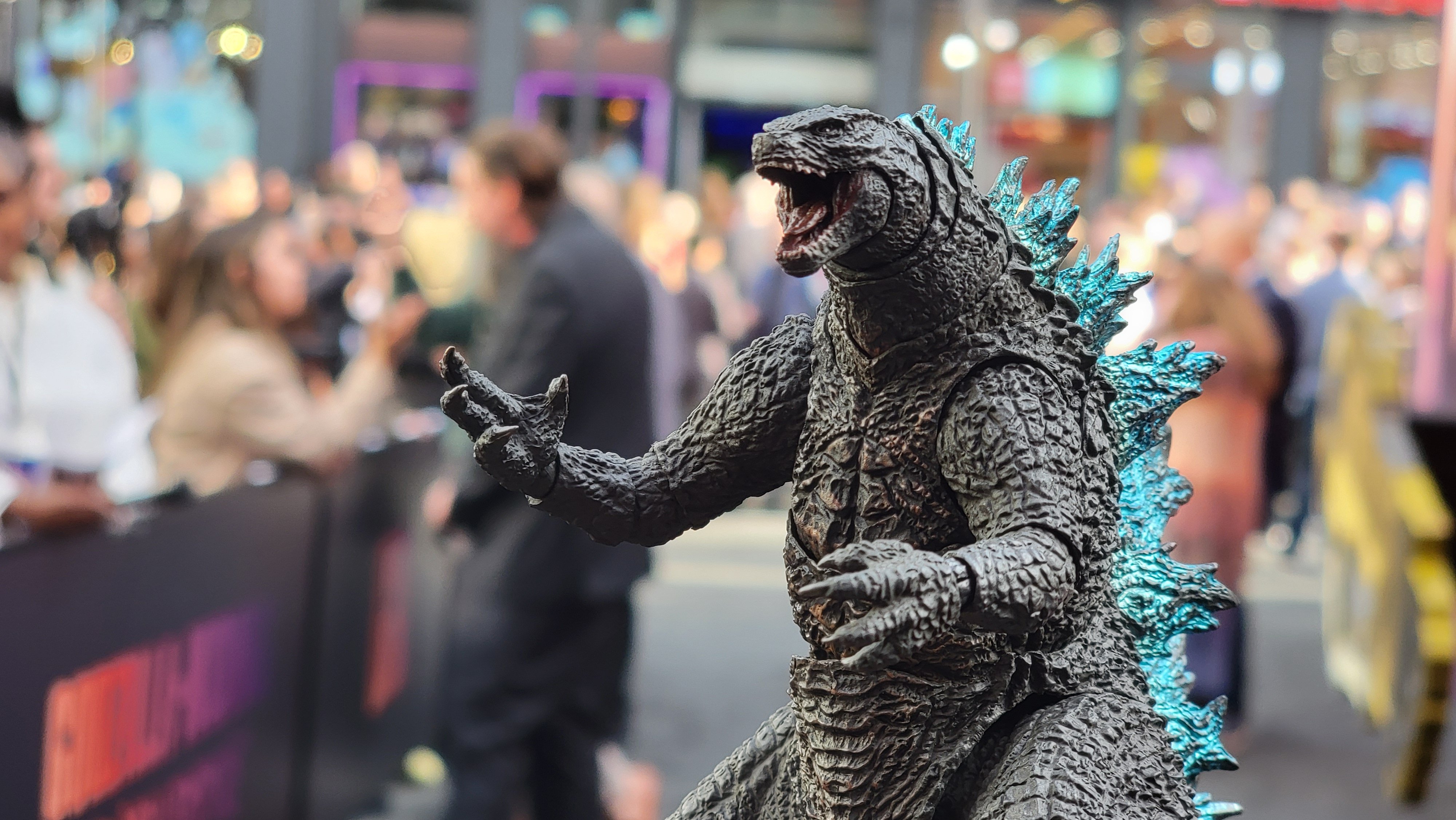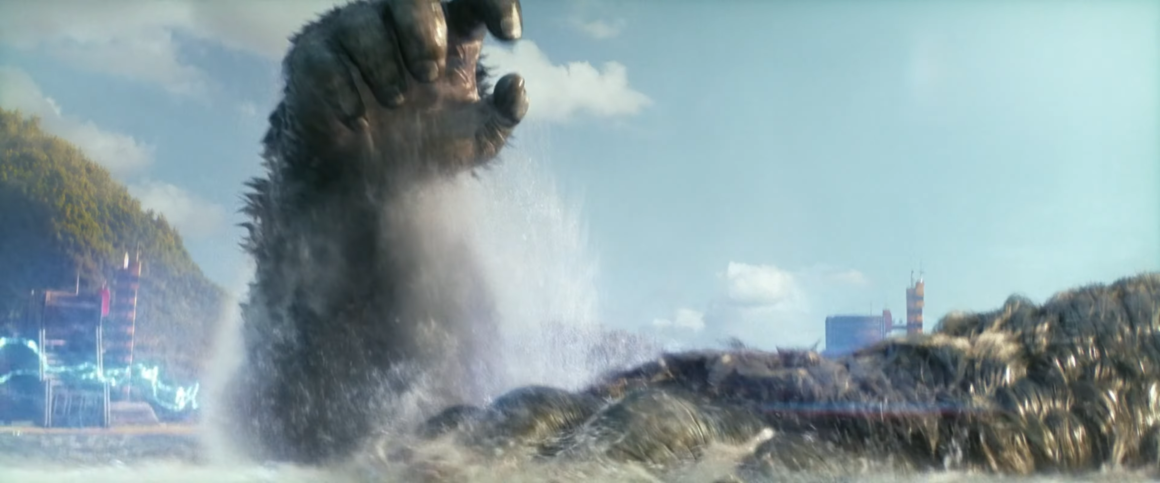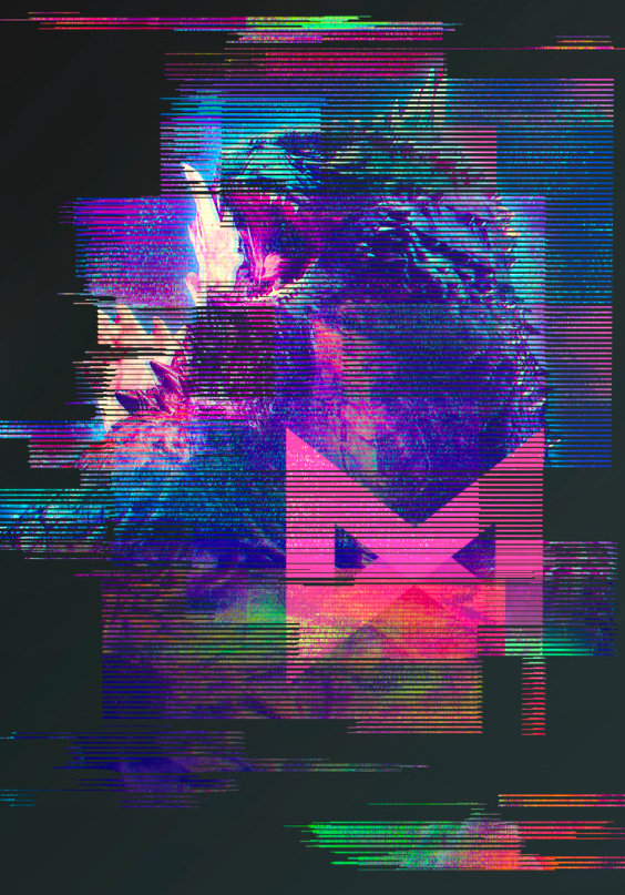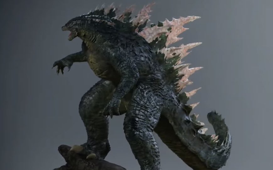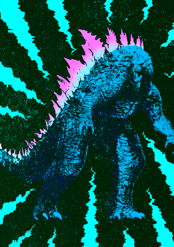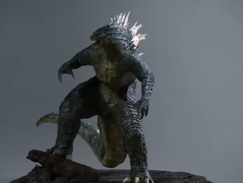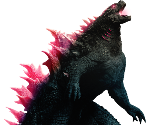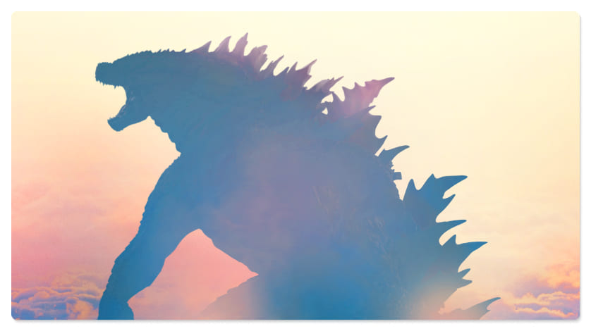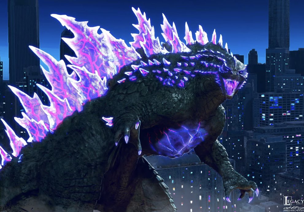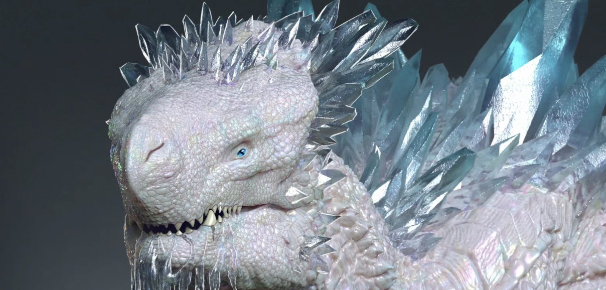 Edited shot adding intense lighting in Godzilla's eye