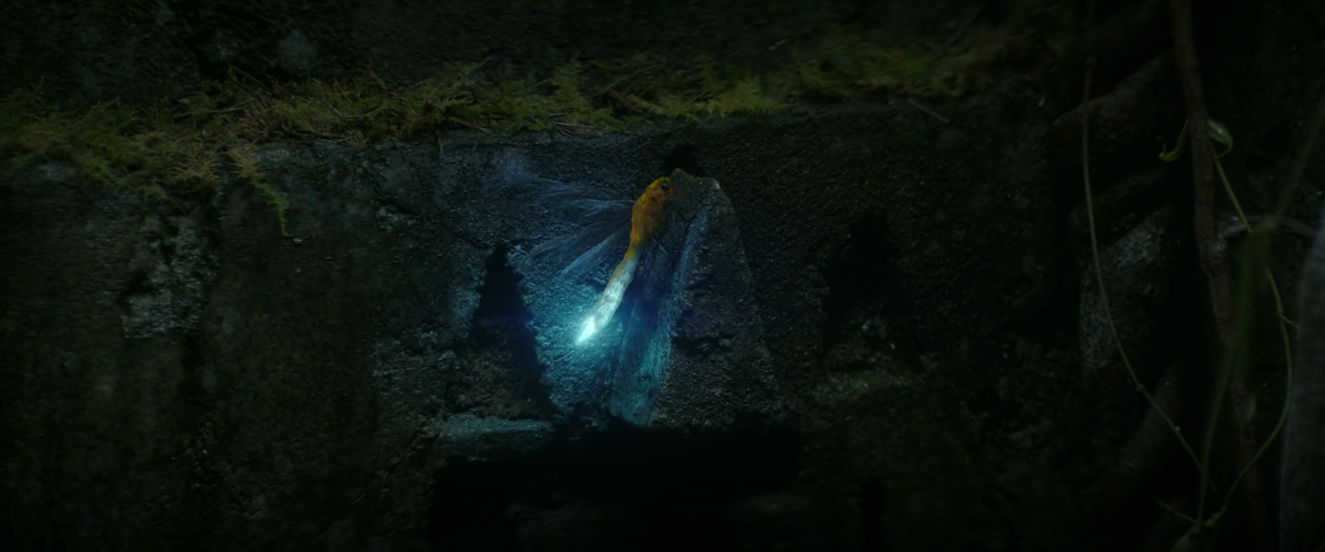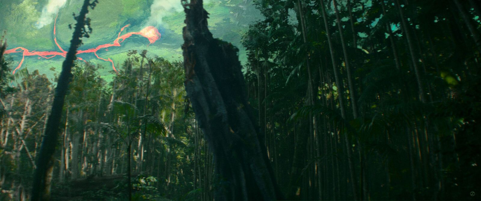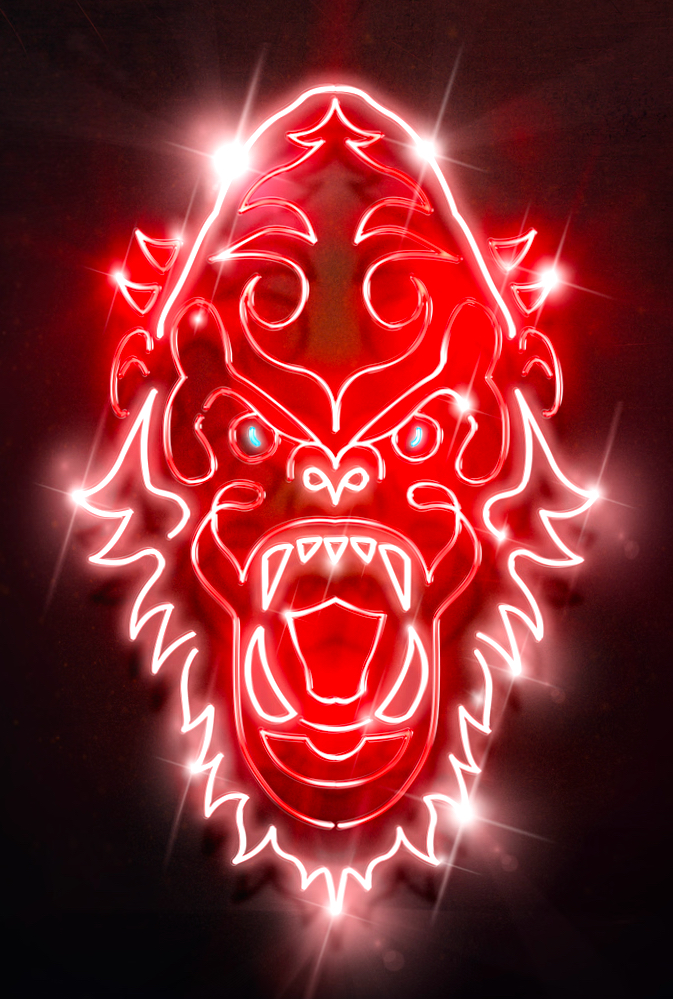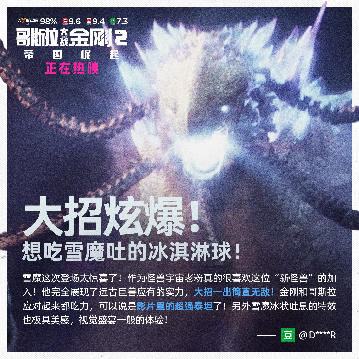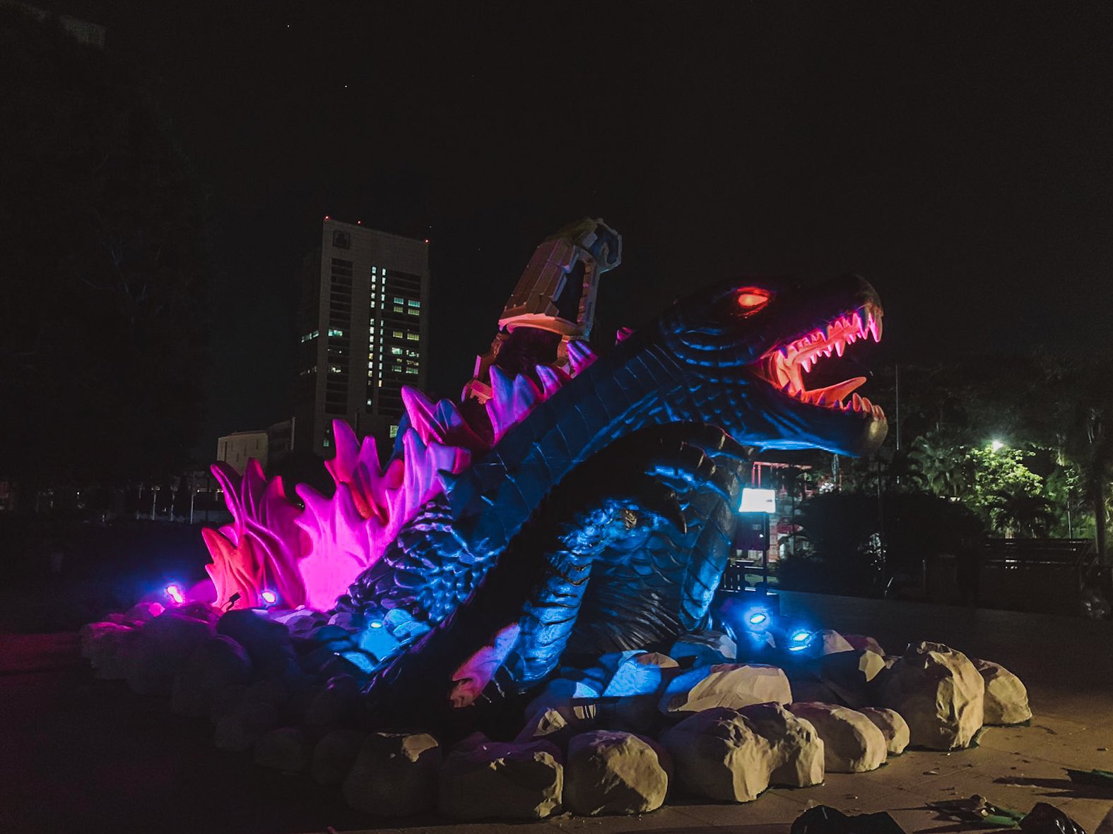 Edited shot adding intense lighting in Godzilla's eye