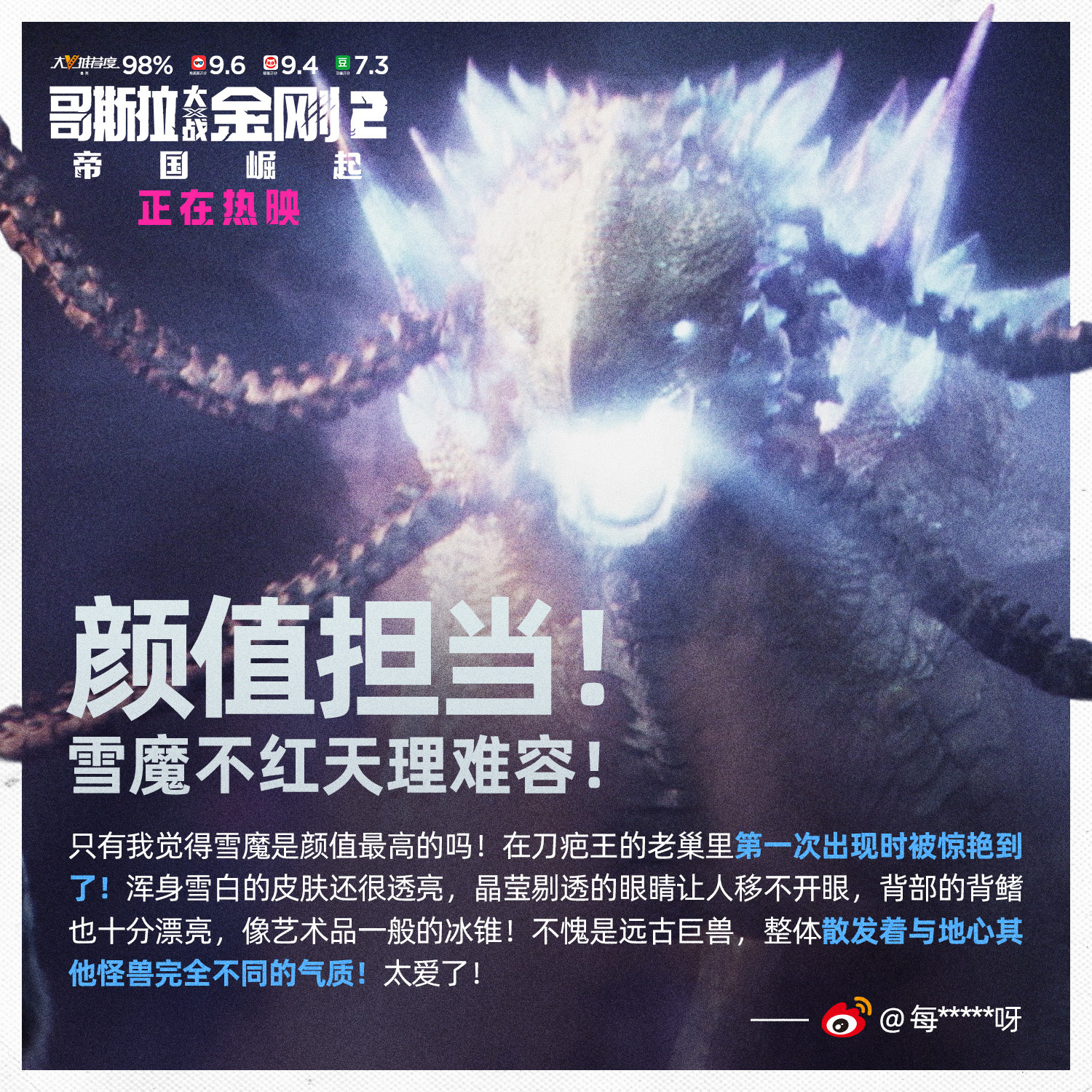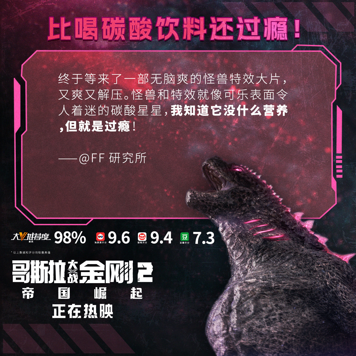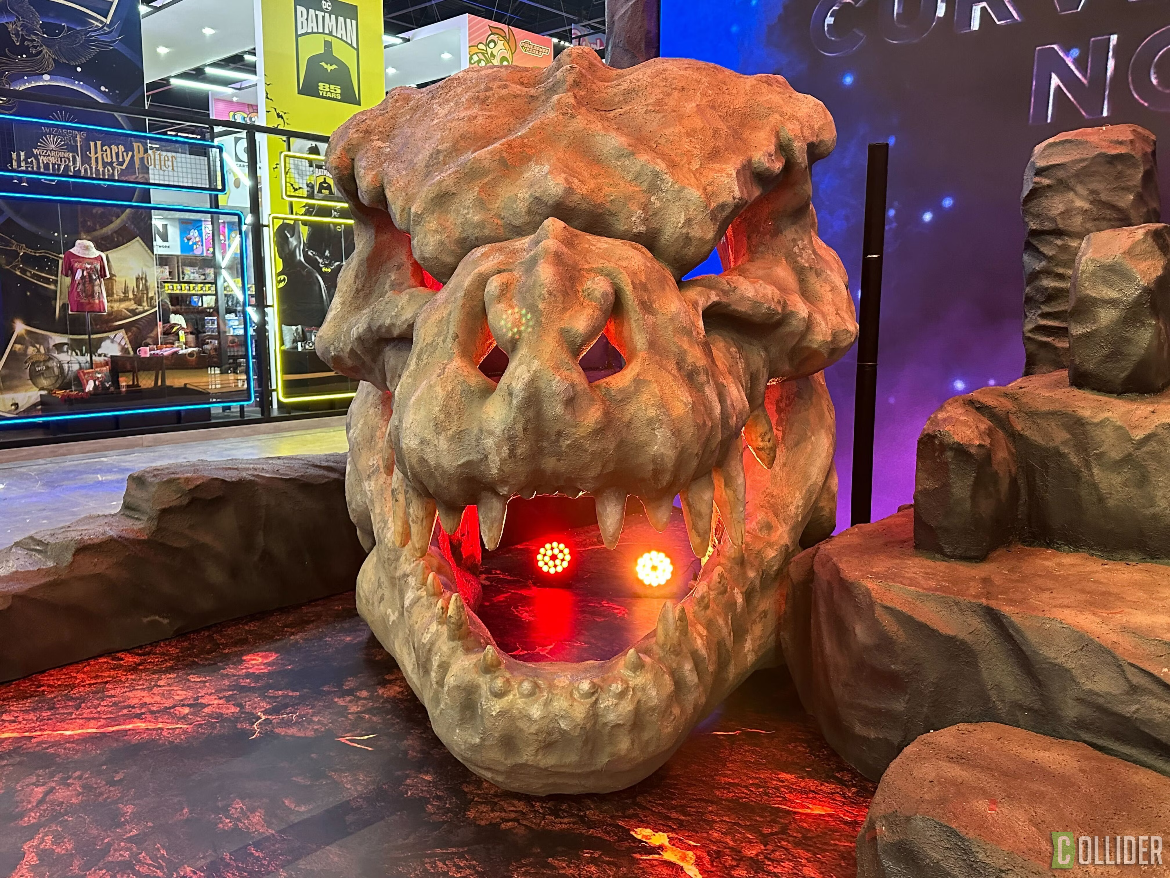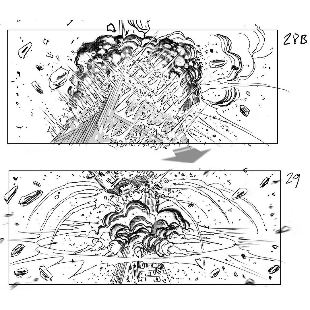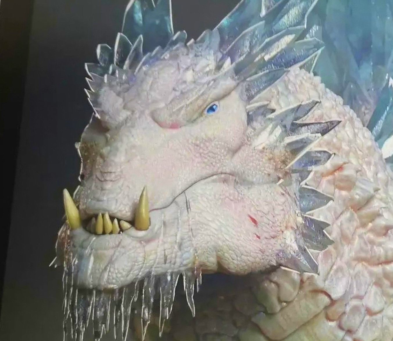 Edited shot adding intense lighting in Godzilla's eye