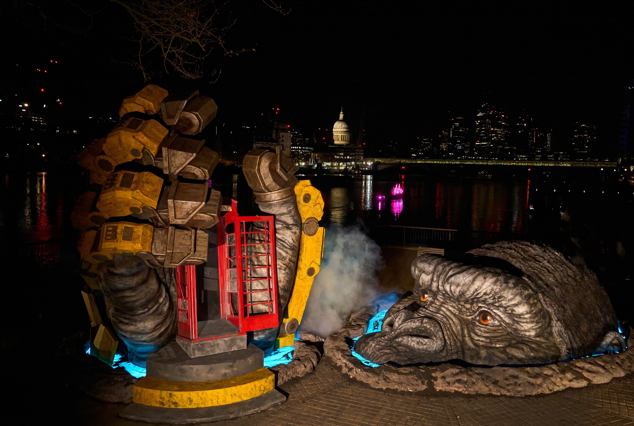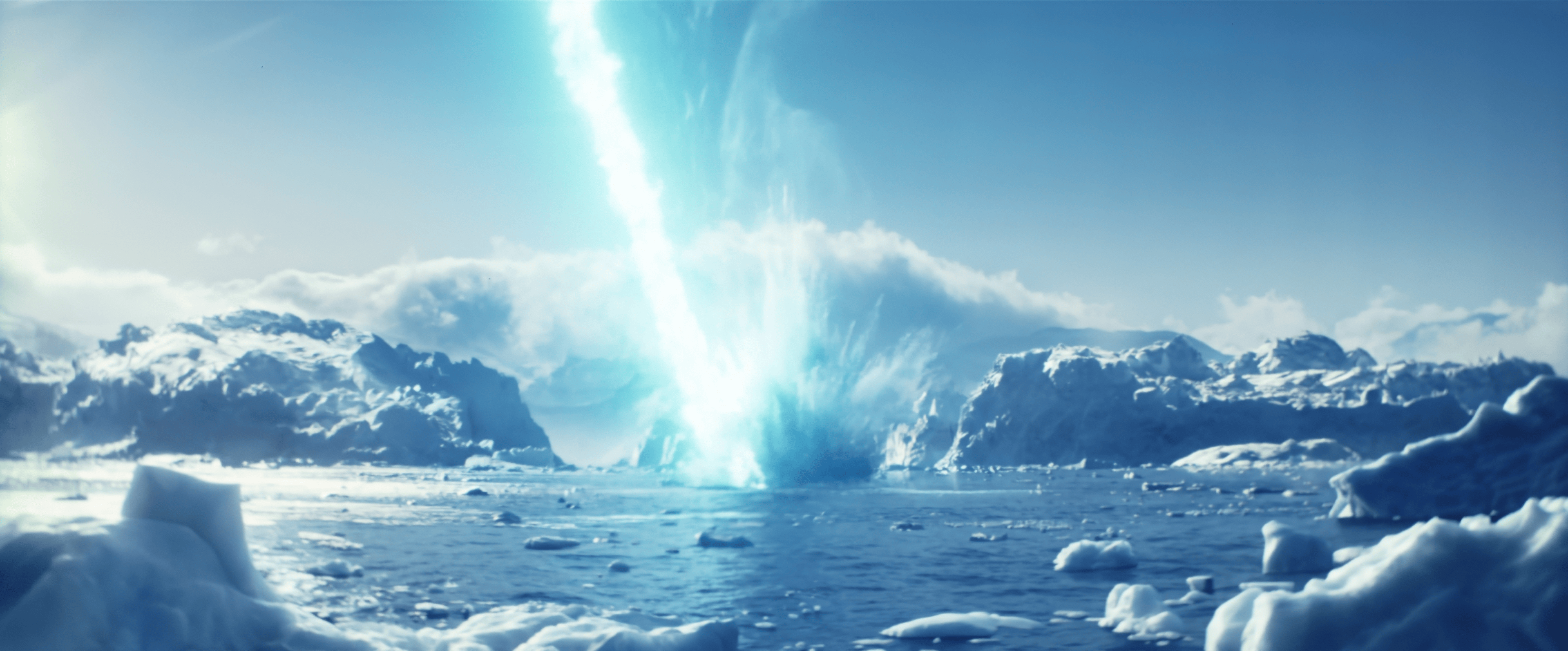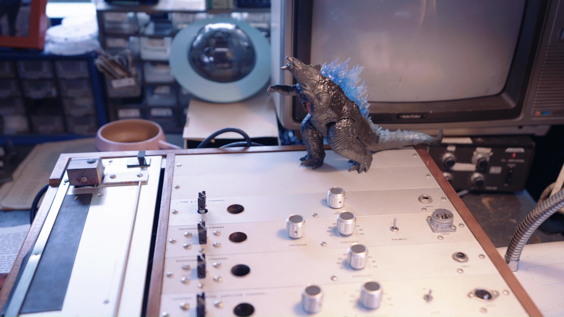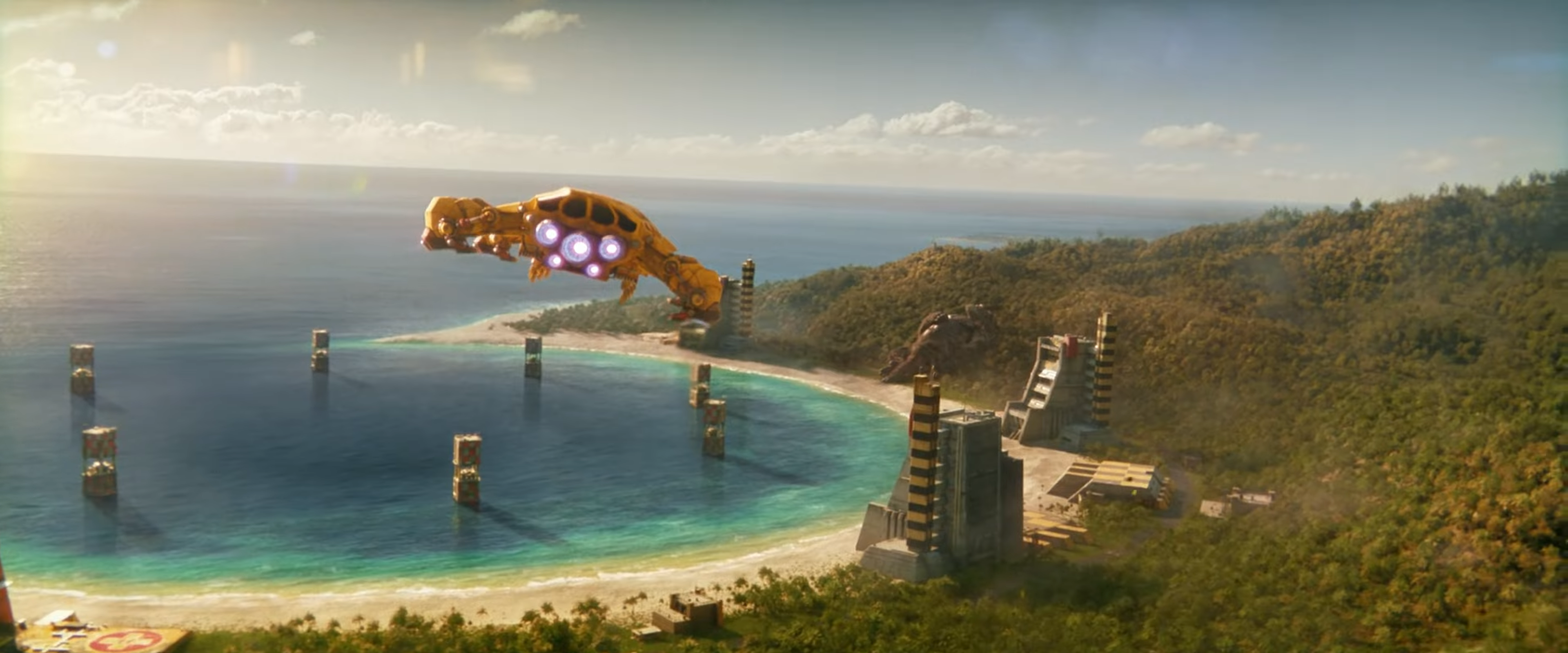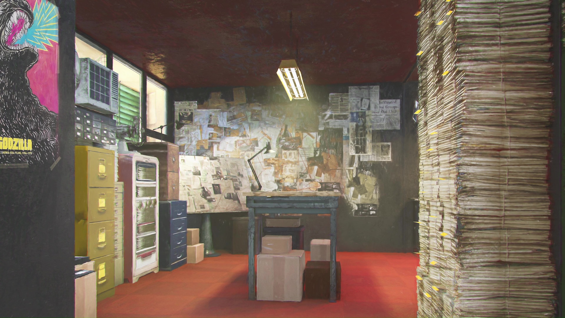 Edited shot adding intense lighting in Godzilla's eye