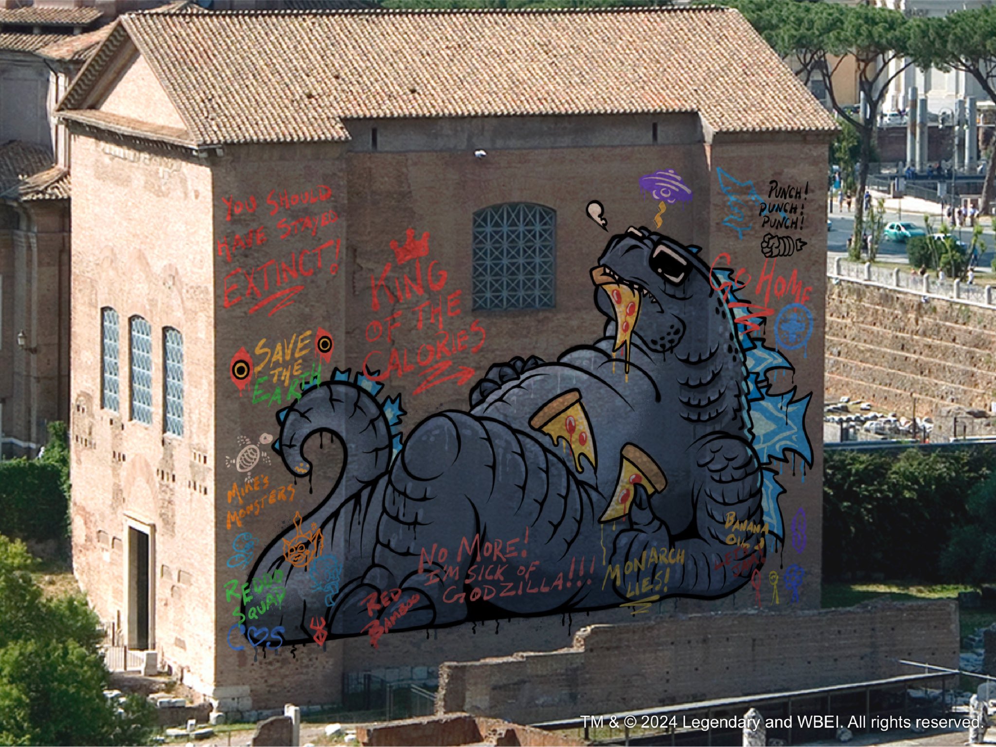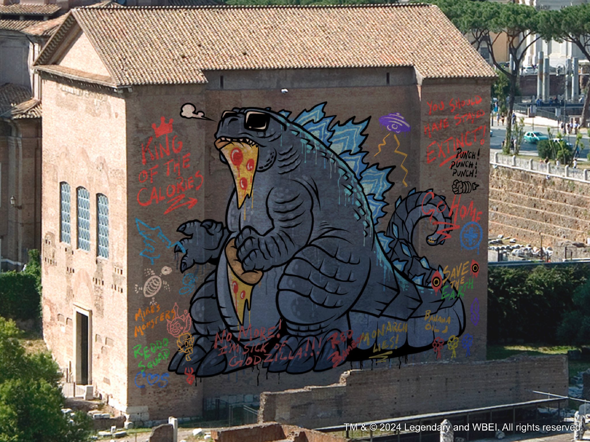 Alternate graffiti referencing King Kong vs. Godzilla