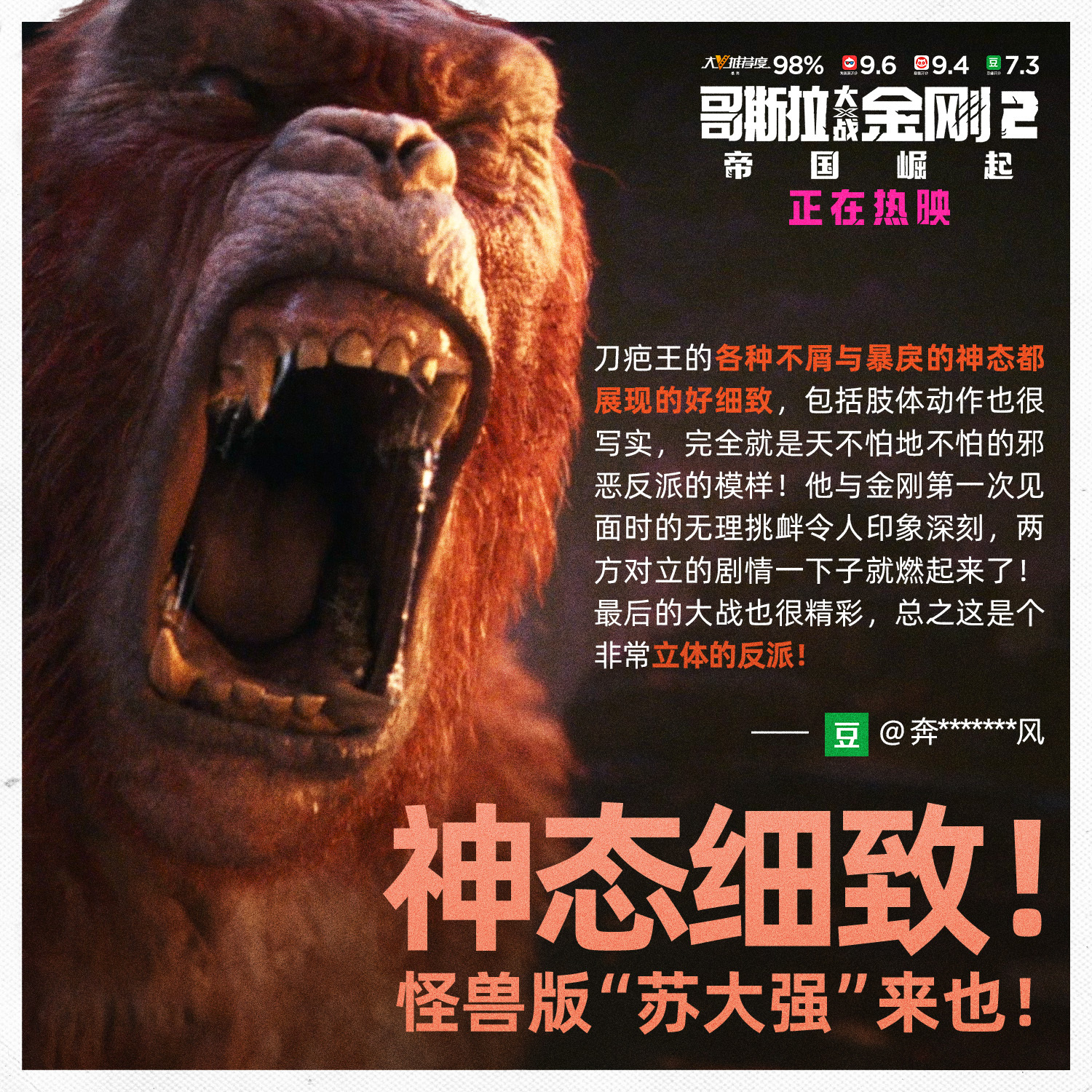 Edited shot replacing Kong's titanium tooth to his real one