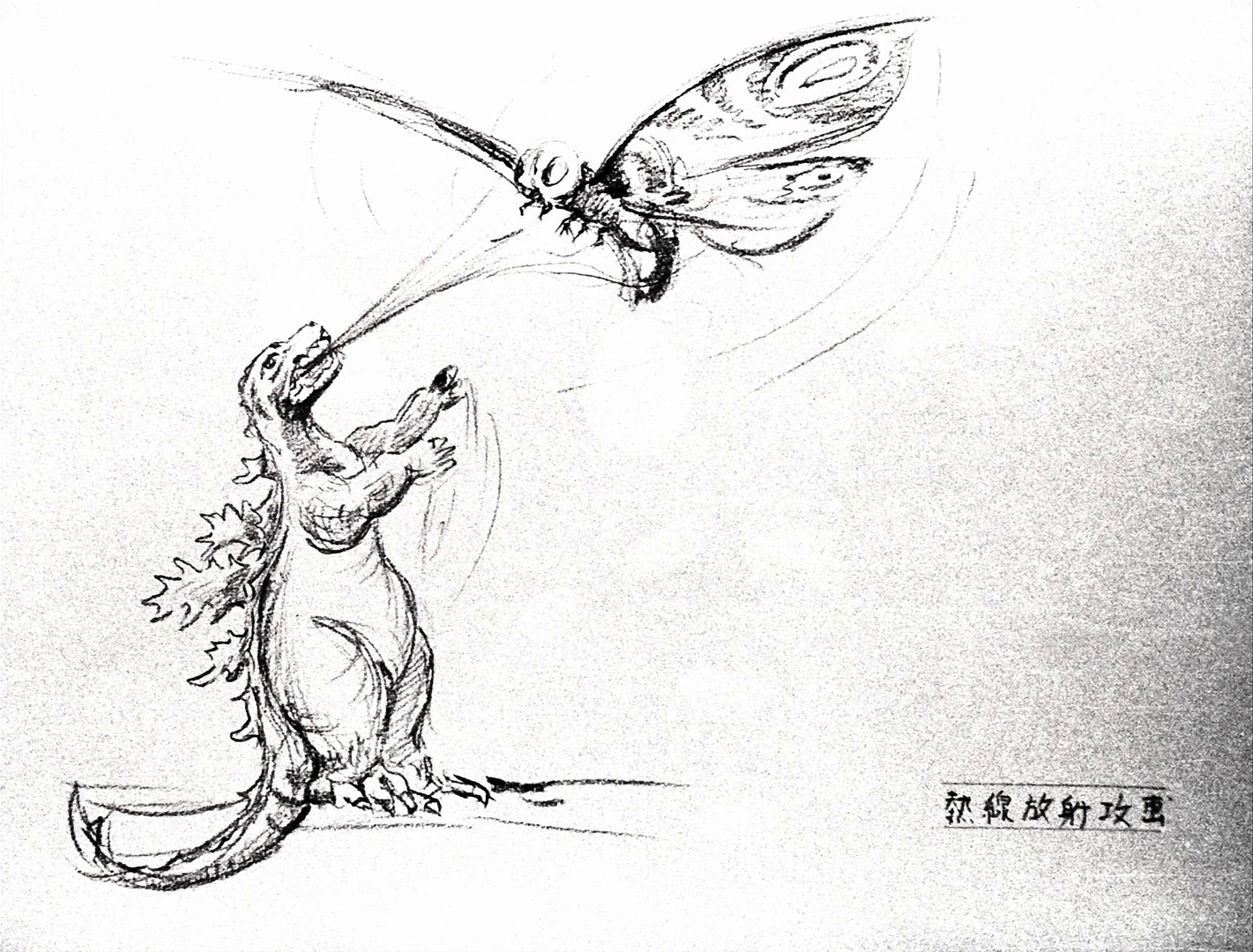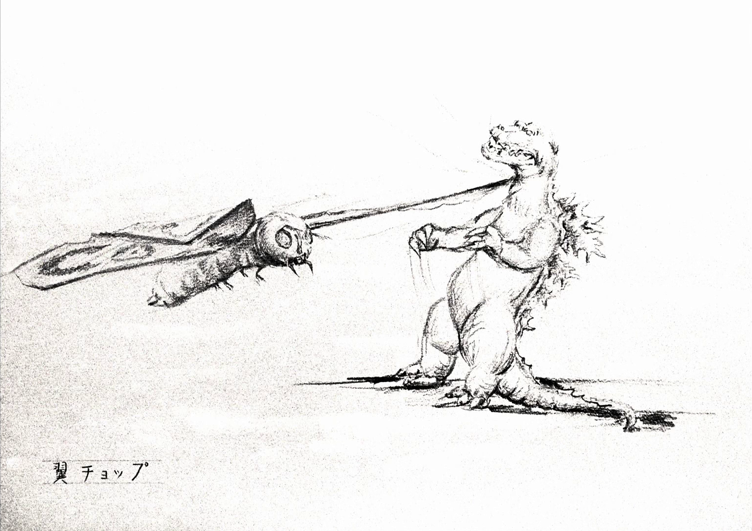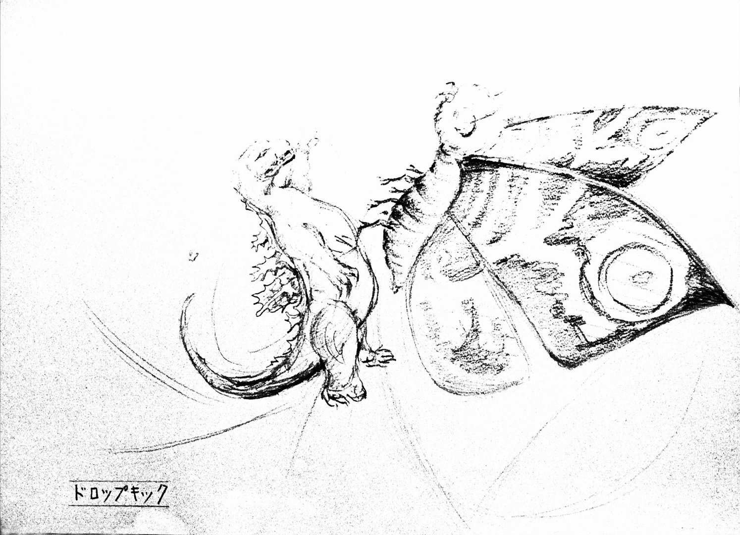Mothra dragging Godzilla by his tail