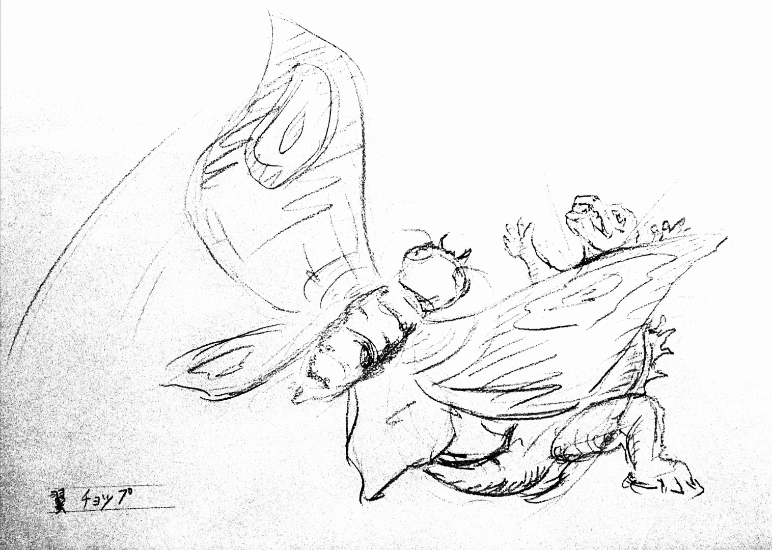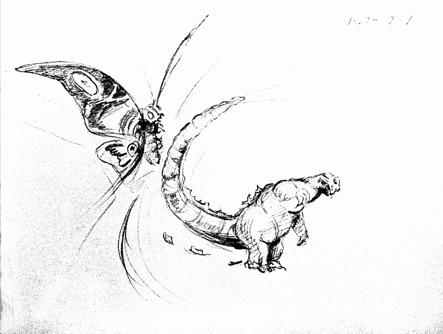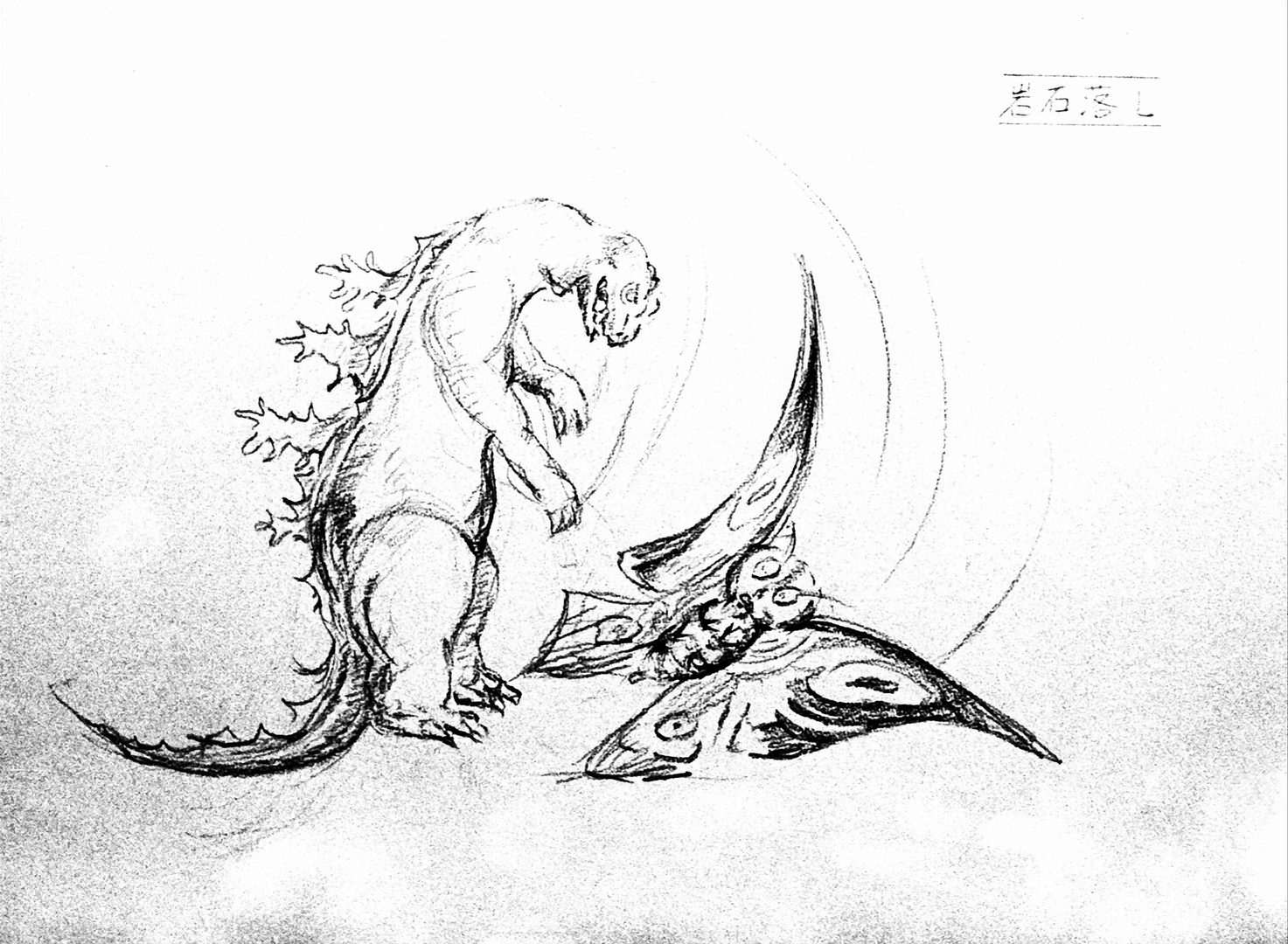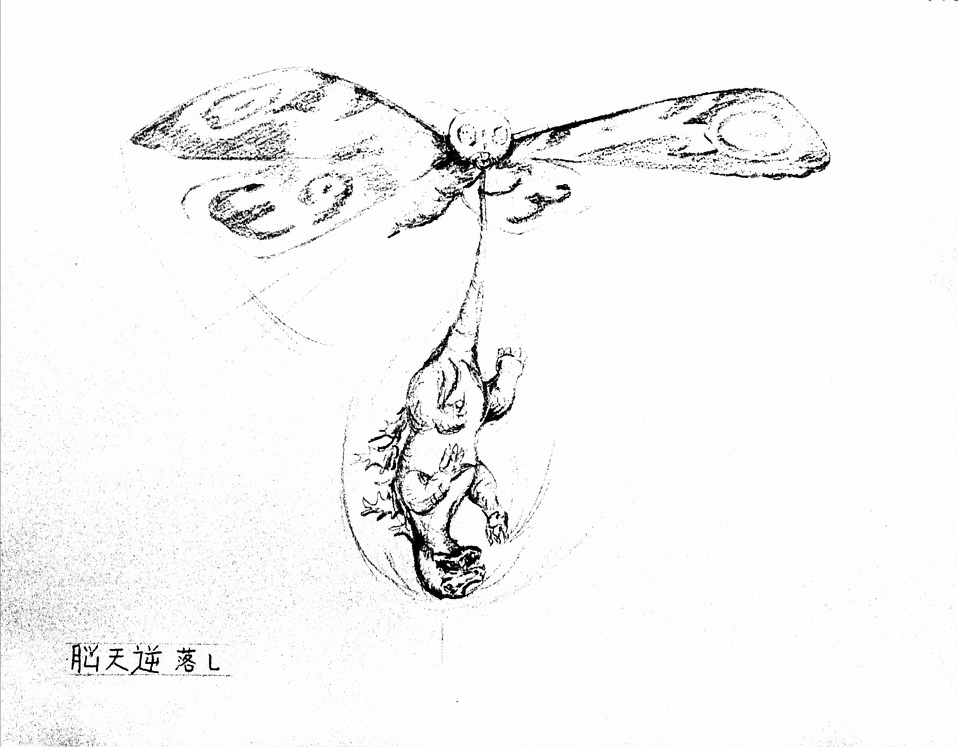 Mothra dragging Godzilla by his tail