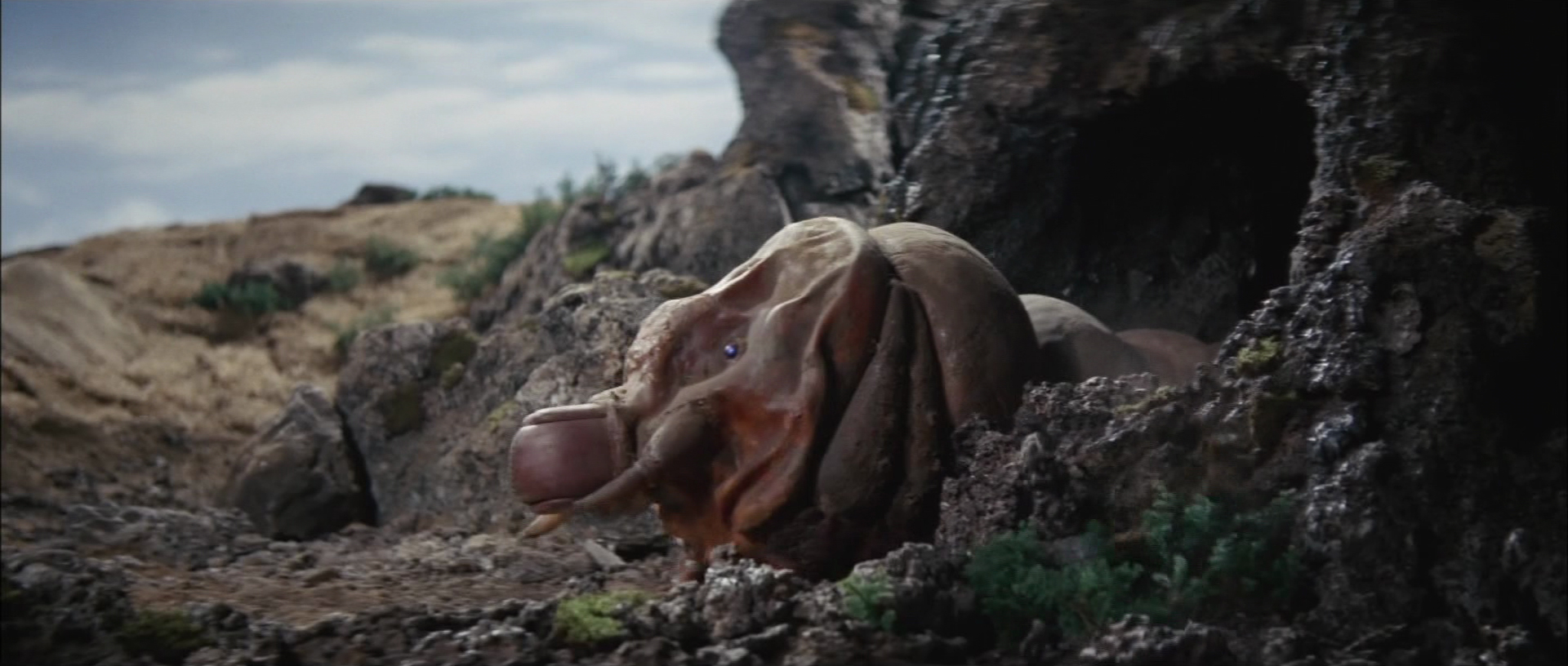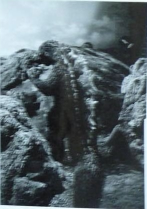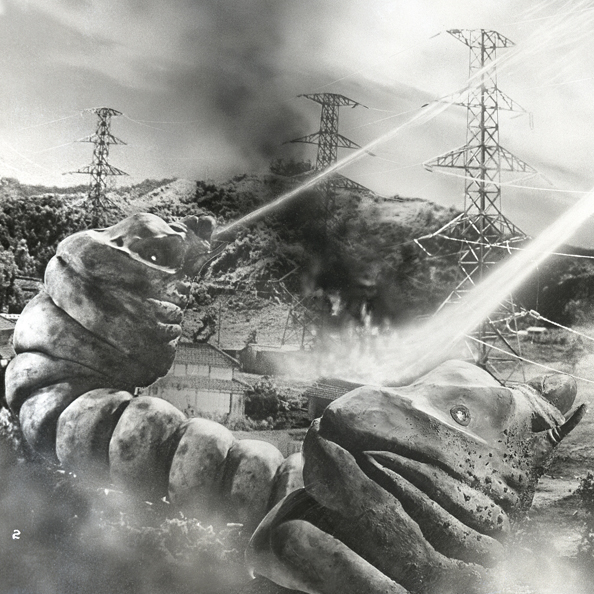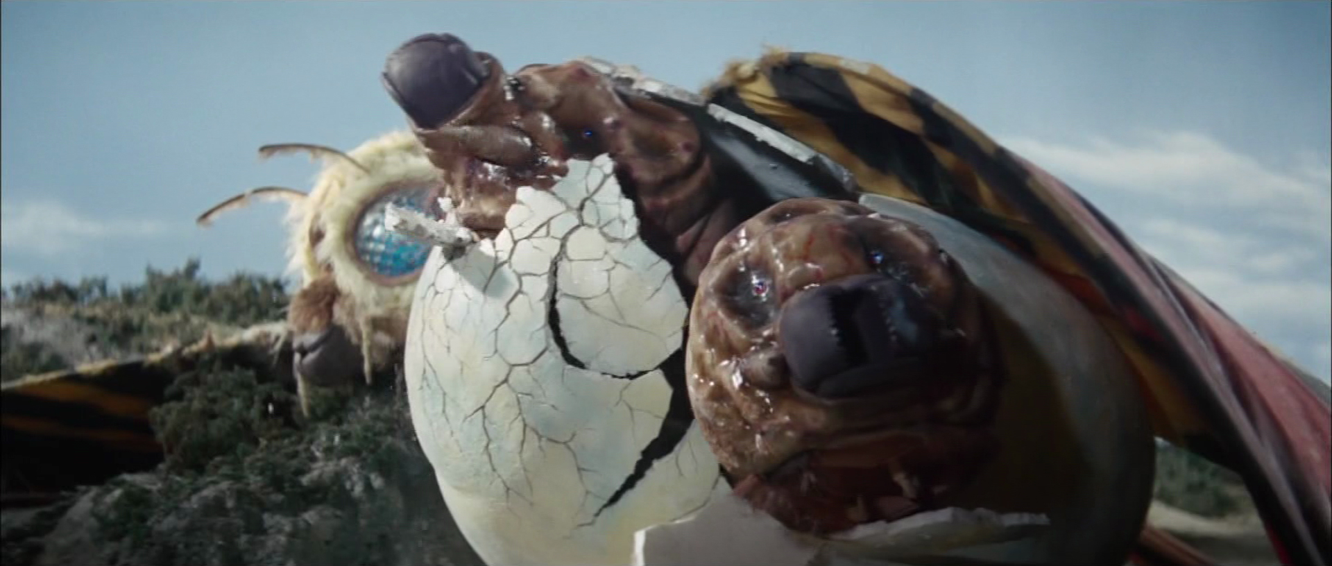The larvae approach Godzilla on Iwa Island