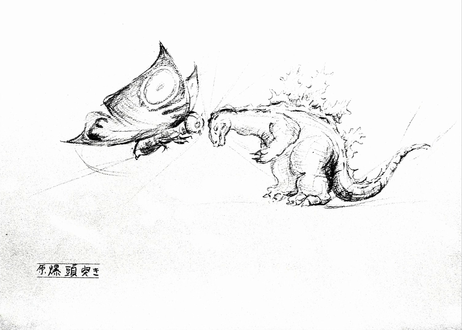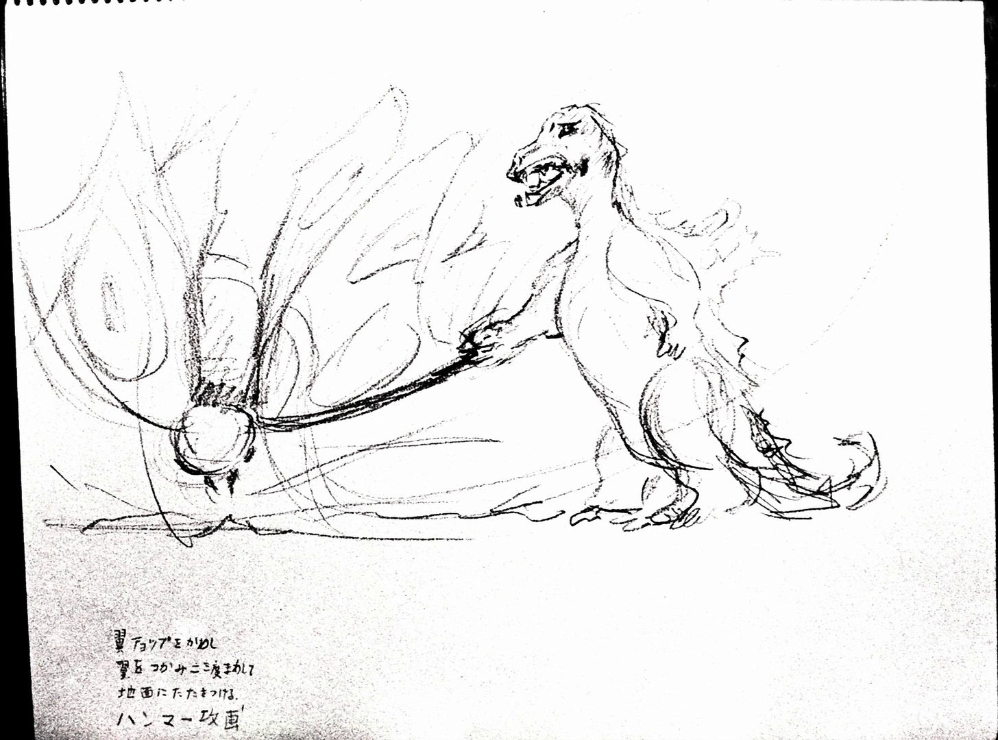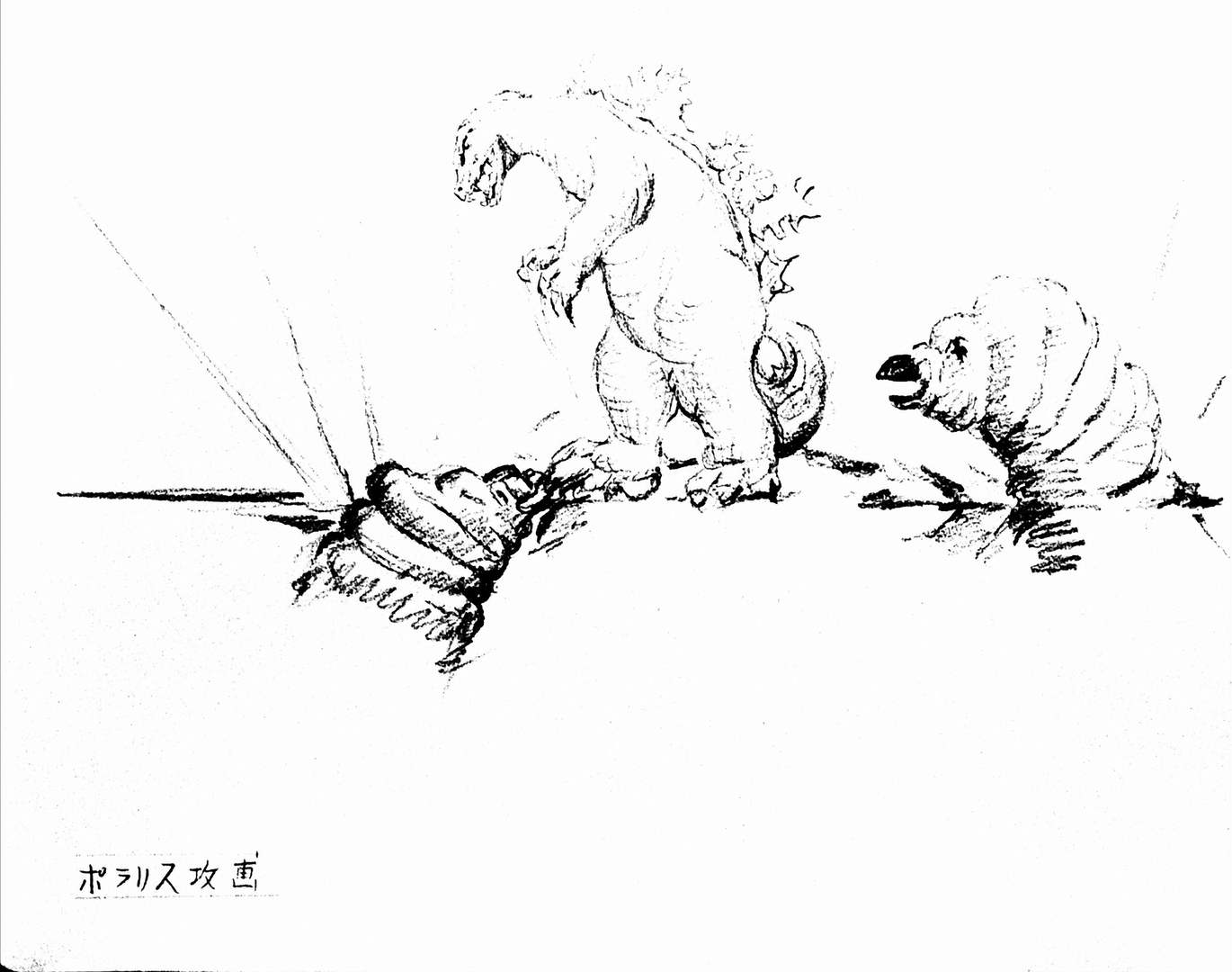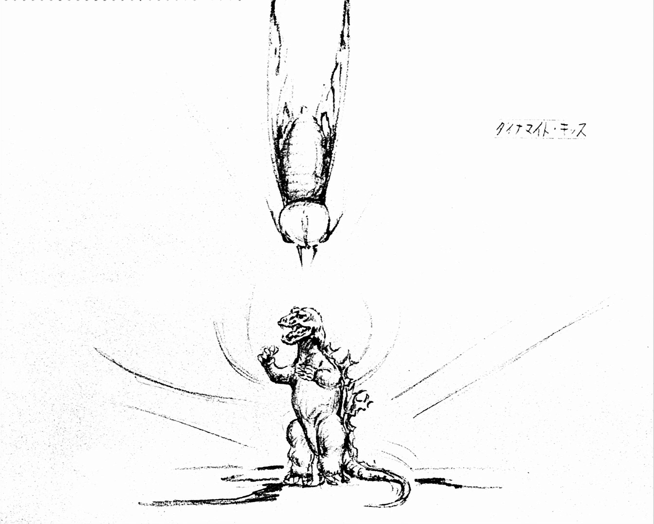A Mothra larva bites Godzilla's tail
