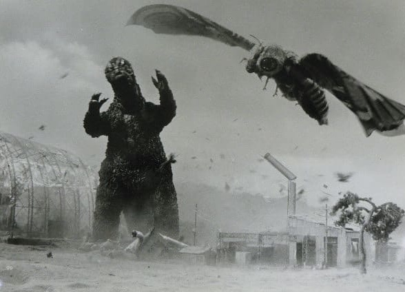 Mothra arrives to confront Godzilla
