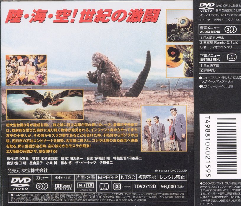 Toho Mothra vs. Godzilla DVD back